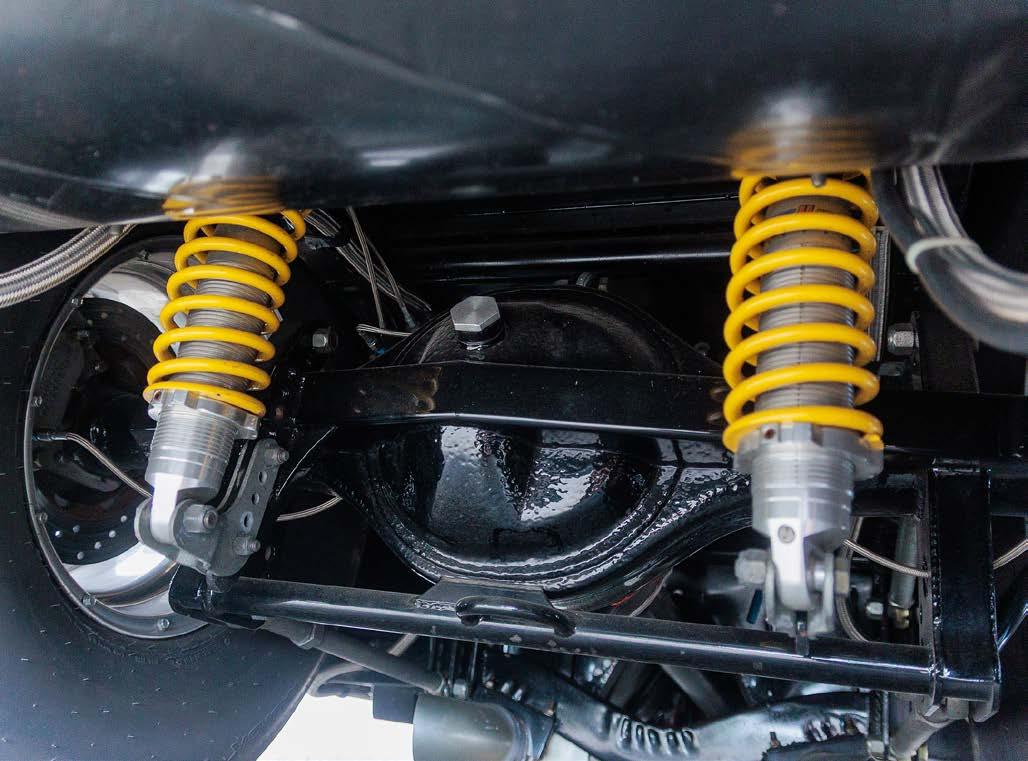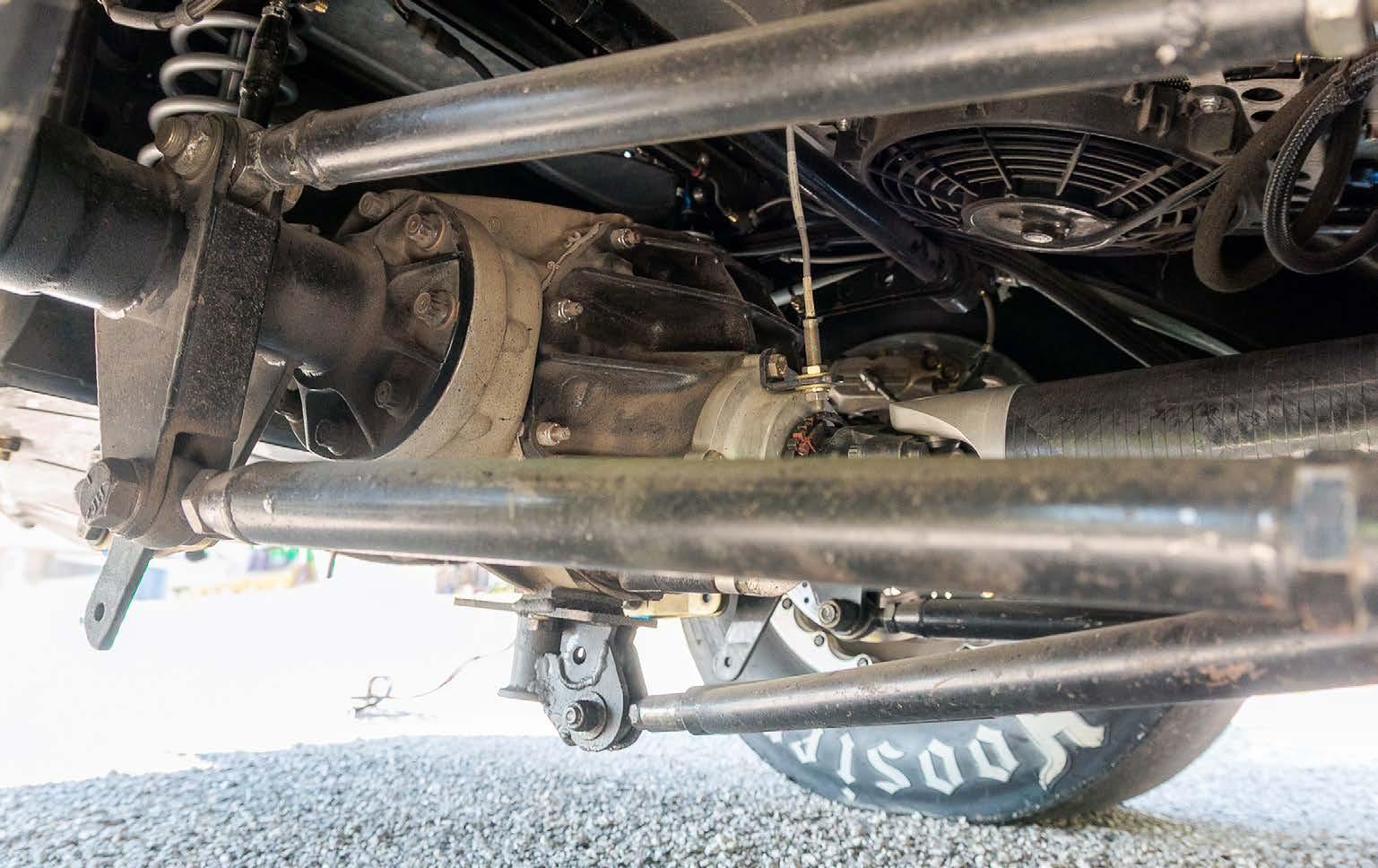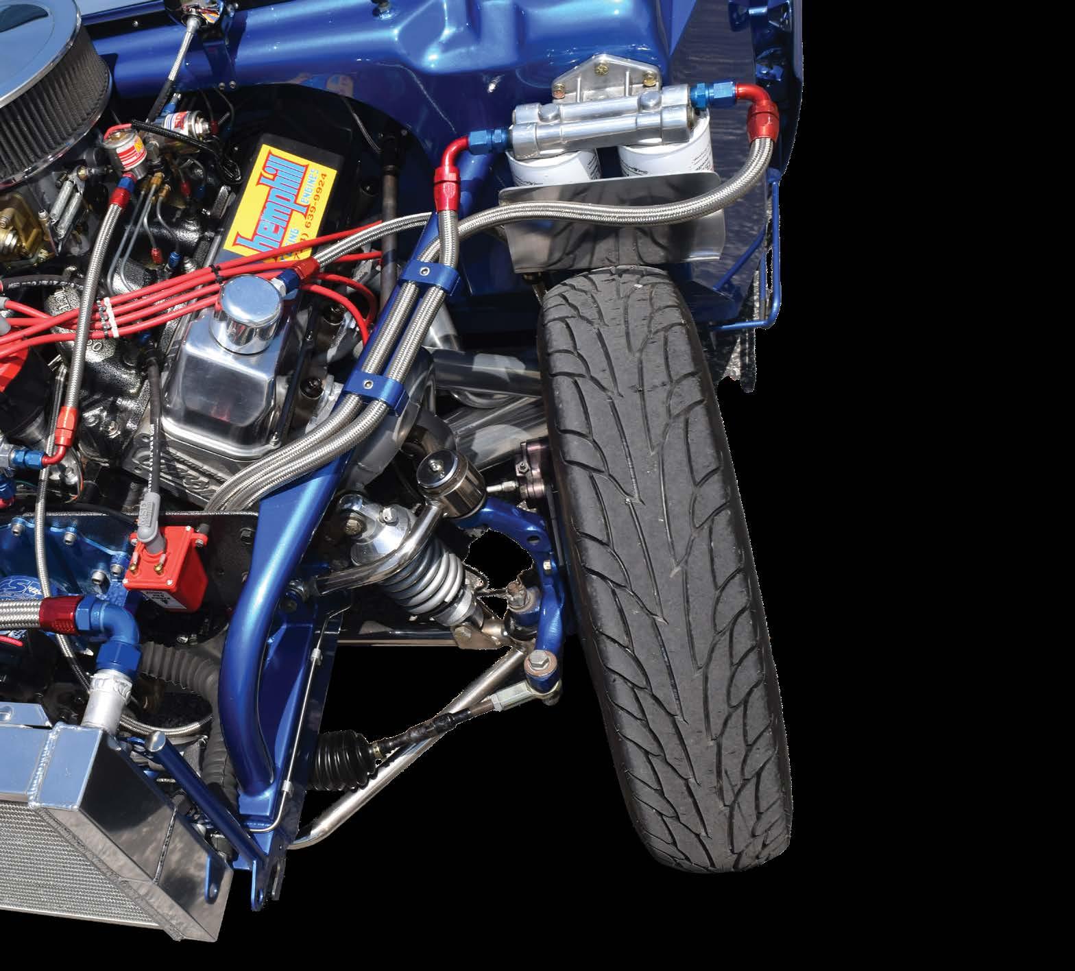 FRONT: Mustang II suspension with Strange doubleadjustable shocks and Hyperco springs. REAR: Alston 4-link with Strange double-adjustable shocks and Hyperco springs.