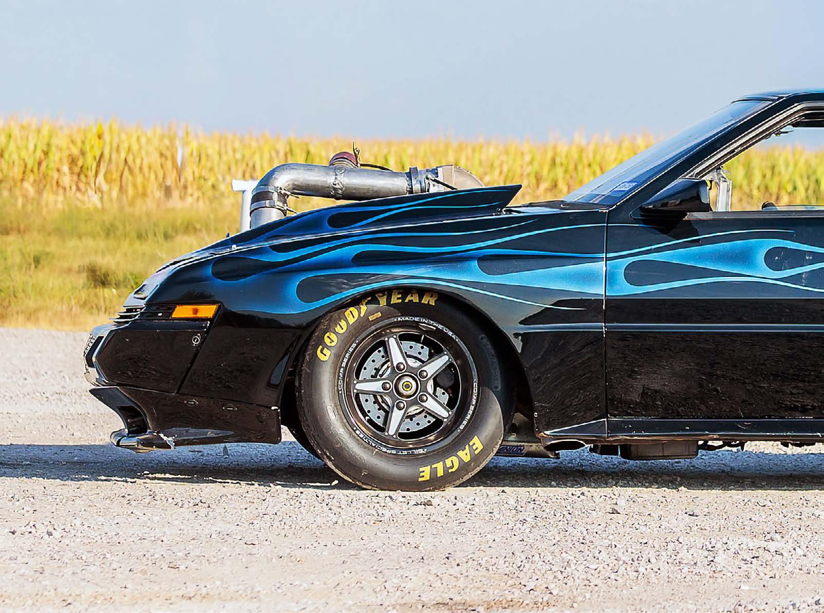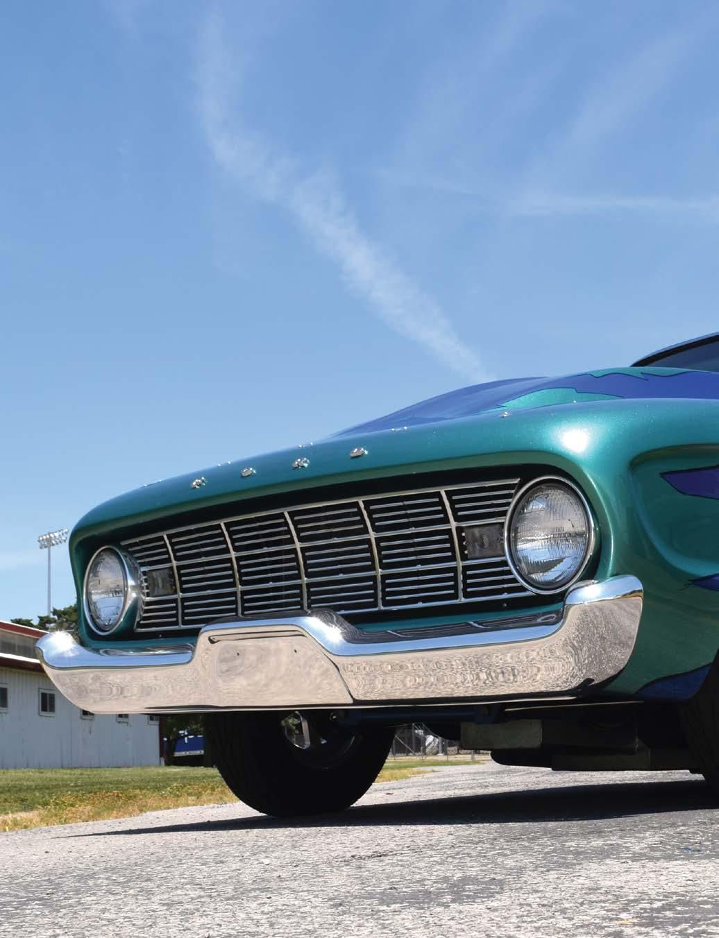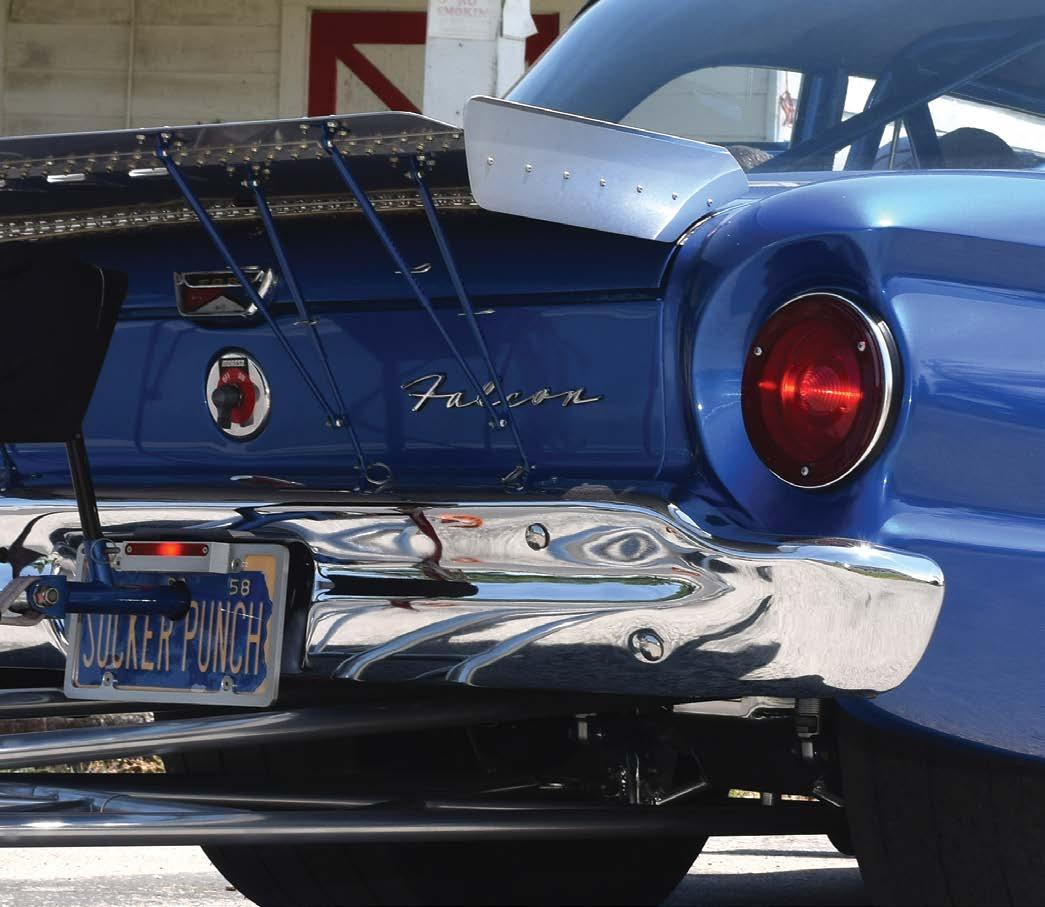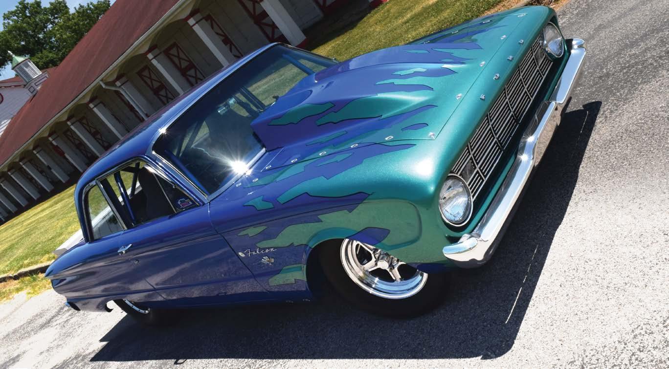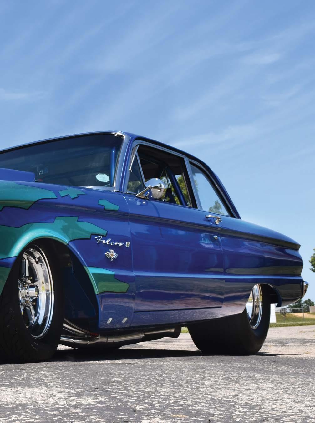 The Falcon sports a wicked low-slung stance thanks to a custom Mustang II suspension with Strange coil overs up front and a fully ceramic coated Fab9 rear on an Alston 4-link out back.