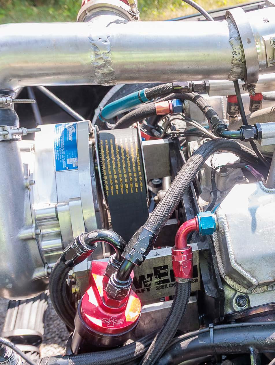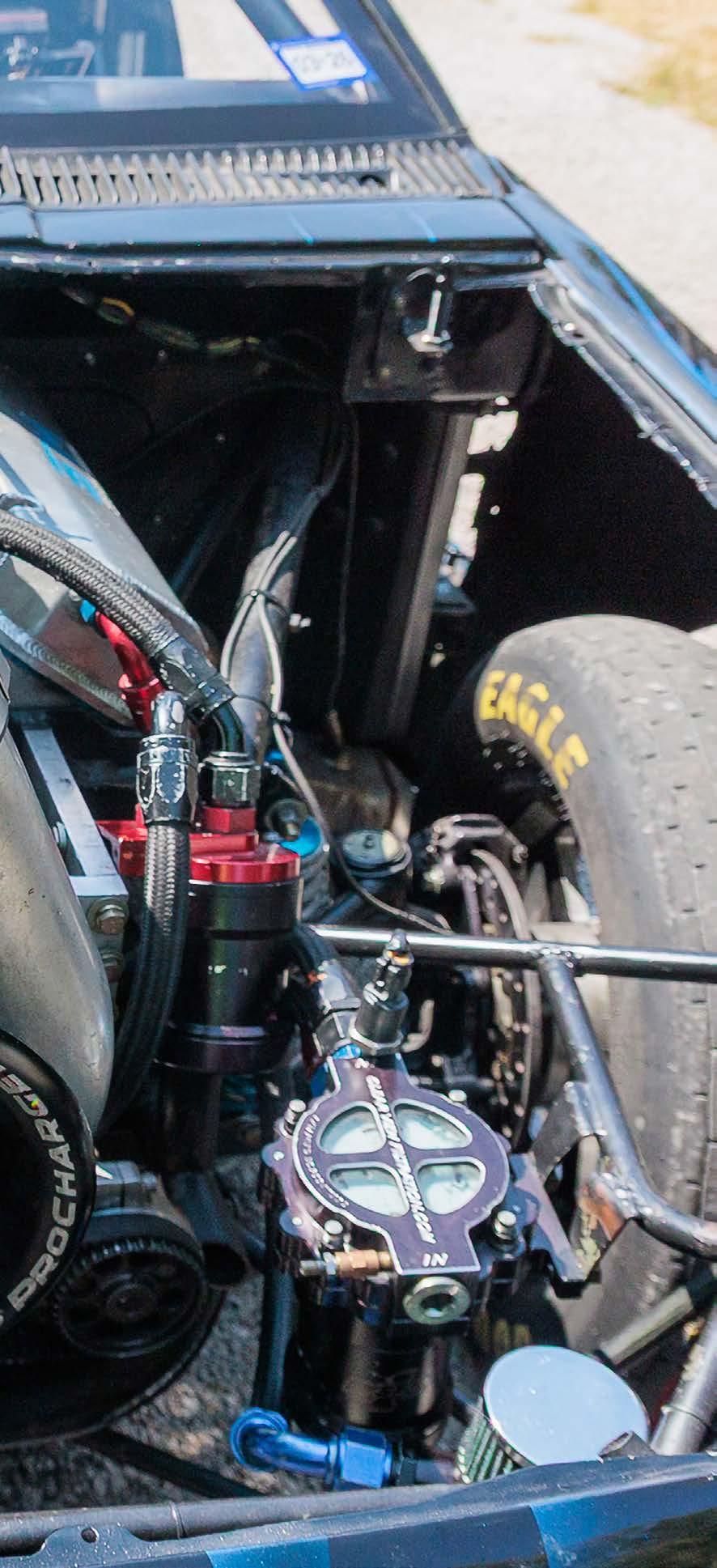 put together using a Reid case, complemented with a Coan Engineering billet converter. Next, he worked with Samantha Moore from Vector Motorsports on a Holley EFI upgrade and custom tuning. These updates delivered a best ET of 8.54 at 158 mph.
