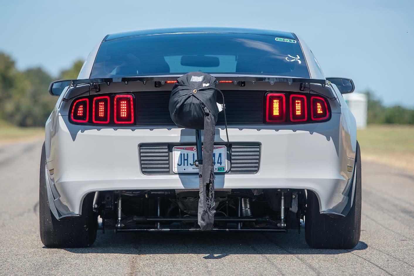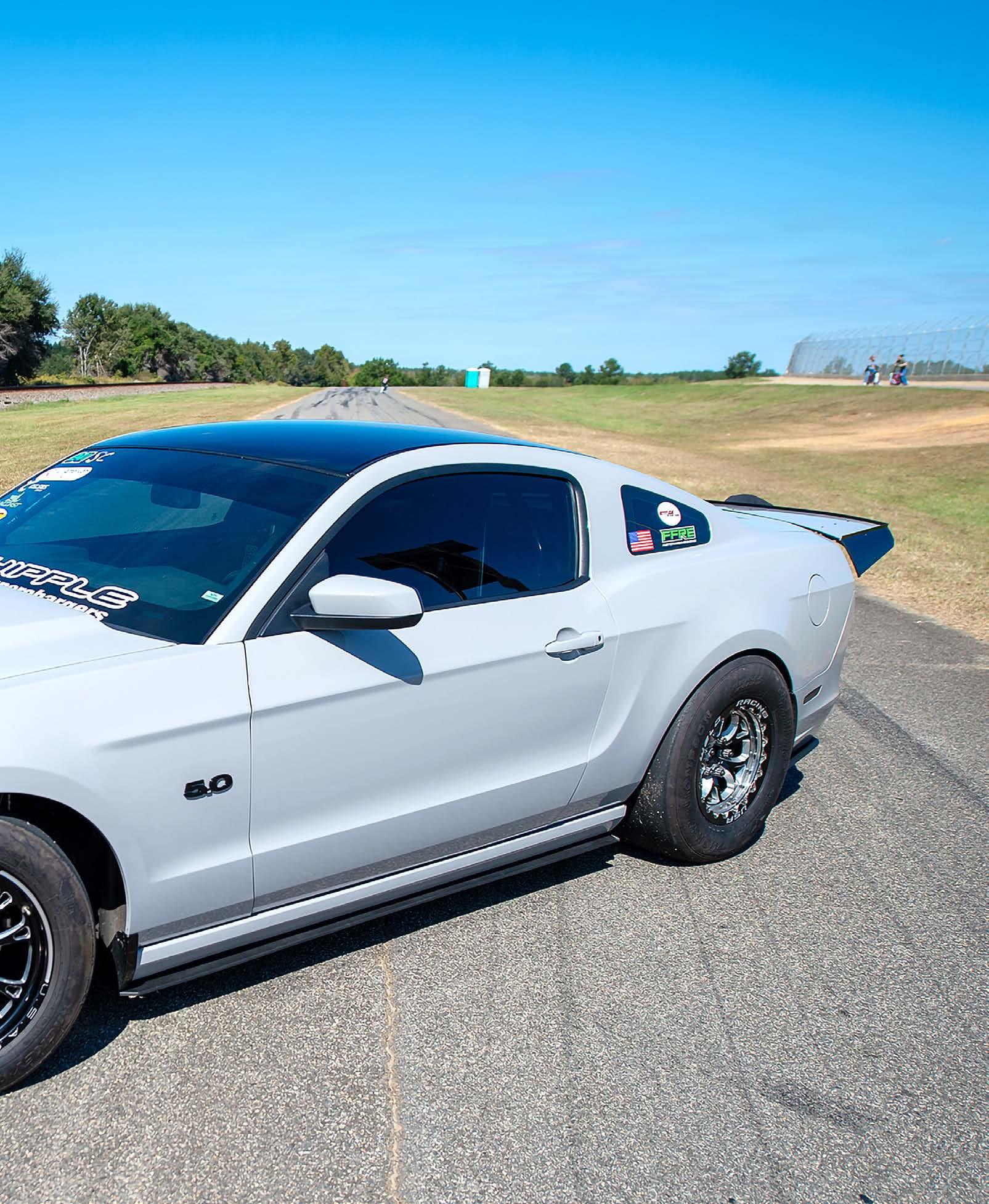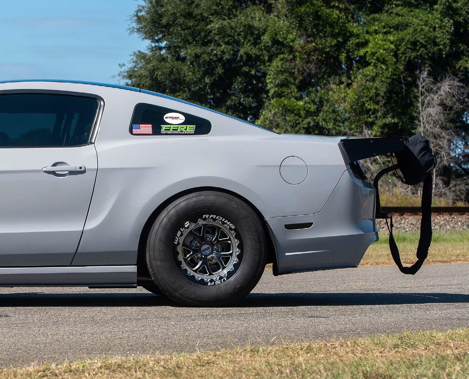 Keeping the S197 unibody stiff and secure is an 8.50-certified roll cage. Gary Rohe Race Cars installed some Mike Thomas Fab lower control arm brackets to position the 4.10-gearequipped, fortified 8.8 rear axle perfectly, and Kelltrac