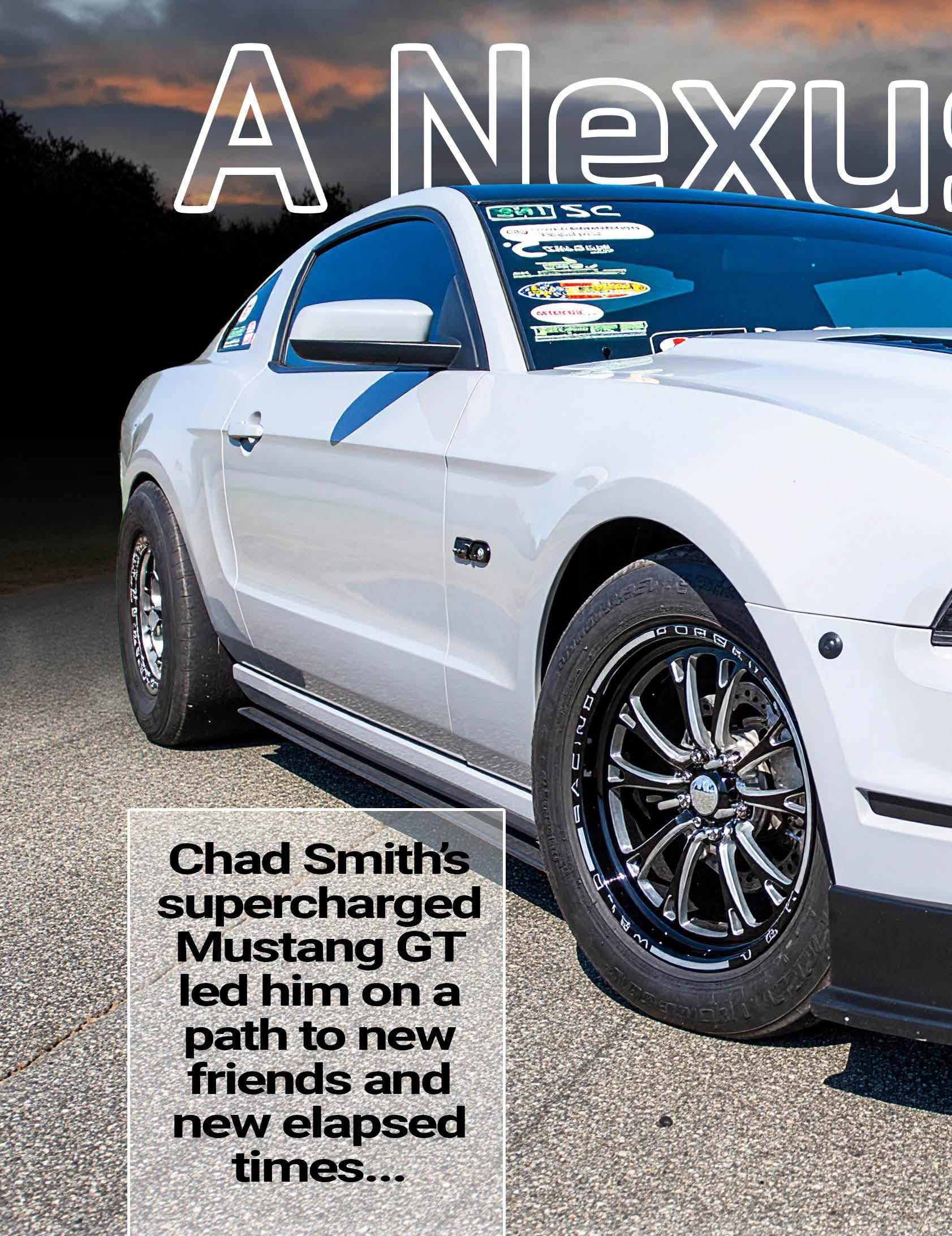 Chad Smith’s 2013 supercharged Mus tang GT was liter ally saved from a salvage yard and originally bought as a donor car to hop-up a previous ly purchased Fox Body. But when he got into it, Smith realized this S197 was a diamond in the rough and well worth saving.