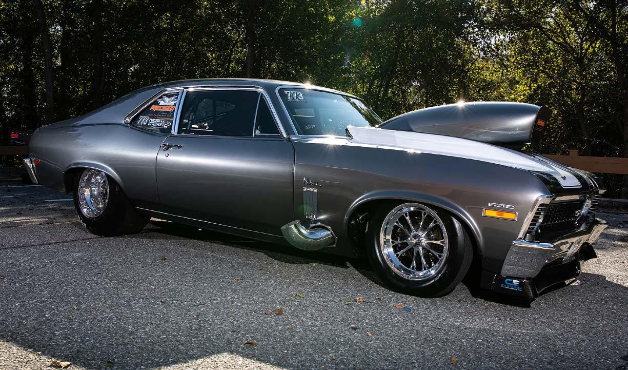 With changing times, for the direction Michael was going with the Nova in heads-up radial drags, the stock front frame and firewall were no longer required, so a completely custom bolt-in strut front end and titanium firewall were constructed. By March of 2018, the Nova was back out running mid to low 4.40s in the 1/8th and 6.80s in the 1/4. “It’s taken 20 years and it’s still not done,” Naumann said with a smile.