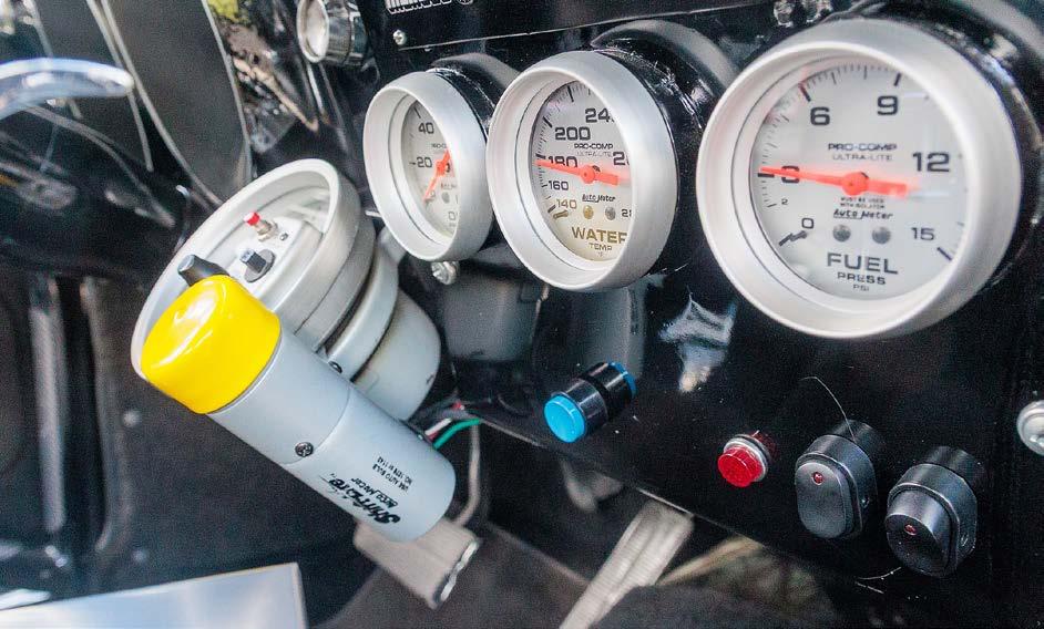 Auto Meter instrumentation offers Stokes necessary engine data, and a Hurst Quarter Stick shifter ensures precise gear changes in the Bowler Performance Transmission-built, Turbo 400 transmission, which has been equipped with a trans brake and 5,200rpm BTE torque converter for quick launches.