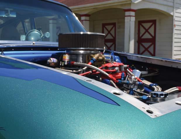 The healthy slightly raked stance comes courtesy of the chassis and suspension work completed including the 4-link, back-half rear suspension conversion that incorporates a wishbone track locator, while custom tubular upper and lower front control arms with coilover shocks were used up front.