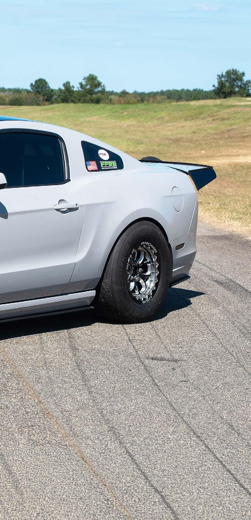Chad Smith’s 2013 supercharged Mus tang GT was liter ally saved from a salvage yard and originally bought as a donor car to hop-up a previous ly purchased Fox Body. But when he got into it, Smith realized this S197 was a diamond in the rough and well worth saving.