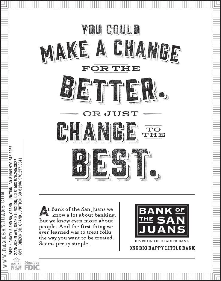 small business operations. Almanac 30 Business Briefs 28 Business People 30 Contributors 21-25 News 2-18 Opinion 26-27 Trends 19-20 PRSRT STD U.S. POSTAGE PAID PERMIT NO. 67 The Business Times 609 North Ave., Suite 5 Grand Junction, CO 81501 21 19