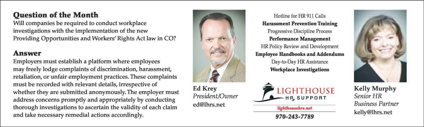 Page 4 The Business Times august 24-sePtember 13, 2023 The Business Times 609 North Ave., Suite 5 Grand Junction, CO 81501 (970) 424-5133 www.thebusinesstimes.com The Business Times is published twice monthly and distributed throughout Grand Junction, Fruita and Palisade. Advertising rates and deadlines are available upon request. Opinions expressed in this publication are those of the writers and don’t necessarily reflect the views of the publisher, editor or advertisers. Copyright © 2023 — All rights reserved