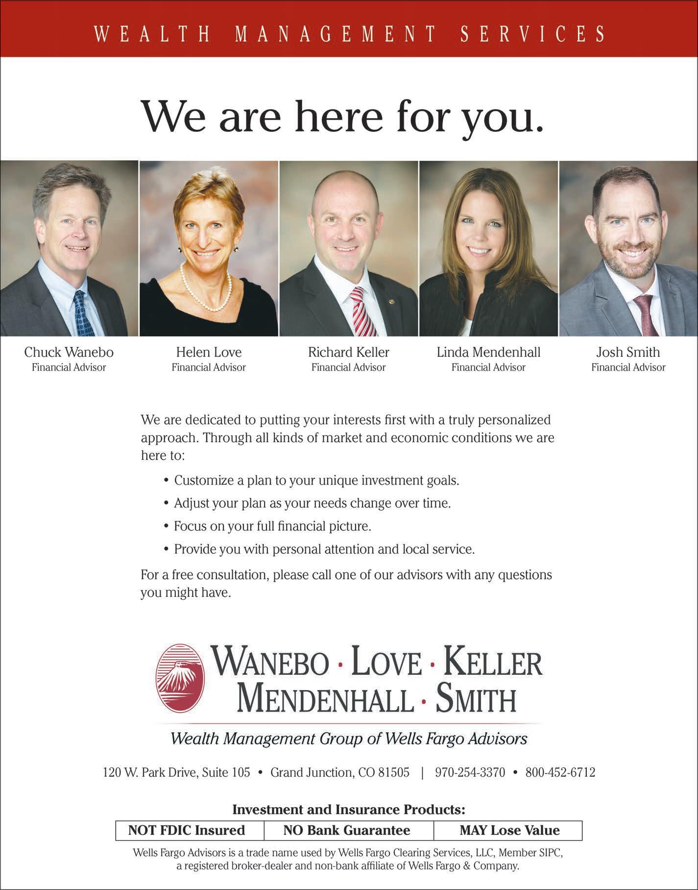 DWC CPAs and Advisors operates the largest public accounting firm headquarted in Western Colorado with offices in Grand Junction as well as Glenwood Springs and Montrose. The firm offers a range of accounting, advisory, audit, tax and wealth management services. For more information, call 243-1921 or log on to www.DWCAdvisors.com.