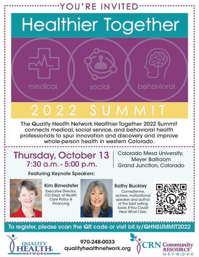 n Grand Junction Area Chamber of Commerce health summit, 7:30 a.m. to 2 p.m. Oct. 26, Grand Junction Convention Center. Admission $65 for chamber members and $75 for others. 242-3214 or https://gjchamber.org