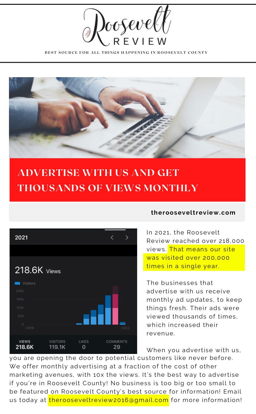 Kenneth Herbert Lumber LLC FREE LOCAL DELIVERY Dedicated to our customers since 1973 317 South Main • 356-5253 Portales Tee Vee Vues “That’s My Bank!” MEMBER FDIC 500 W. 2nd • 359-2023 P.C.S. Prescription Specialists VITAMINS SICK ROOM SUPPLIES 109 WEST 4TH 356-4422 PUBLISHED BY THE PRINT SHOP • 1101 E. Third St. • Portales, NM 88130 FOR ADVERTISING RATES CONTACT 575-356-8531 or 575-760-0570 OCT. 22, 2022 THROUGH OCT. 28, 2022 Sylvia’s Hair & Nails Welcomes Nail Tech’s Sylvia • Nellie • Raigan Tues.-Fri. 8:00-5:00 / Sat. 8:00-4:00 1118 W. 1st • 575-356-5266 Your Family Hair Care Center! All Breed Pet Grooming • Boarding 2103 S. AVENUE D 575-356-9112 www.jpstonecb.com https://www.facebook.com/pages/C-Js-Pill-Box-Inc/107269245996239 COLLEGE CLEANERS 7 a.m. to 5:30 p.m. Monday thru Friday Dry Cleaning • Alterations Shirt & Jean Service 1016 W. 2nd • 356-5552 Brenda Kelly - Sandra Lynn FREE Pick up atThe Print Shop 1101 E. Third St. ORDER ONLINE: mccartyscafe.com Buena Vista Realty - SEE AD ON Back Cover