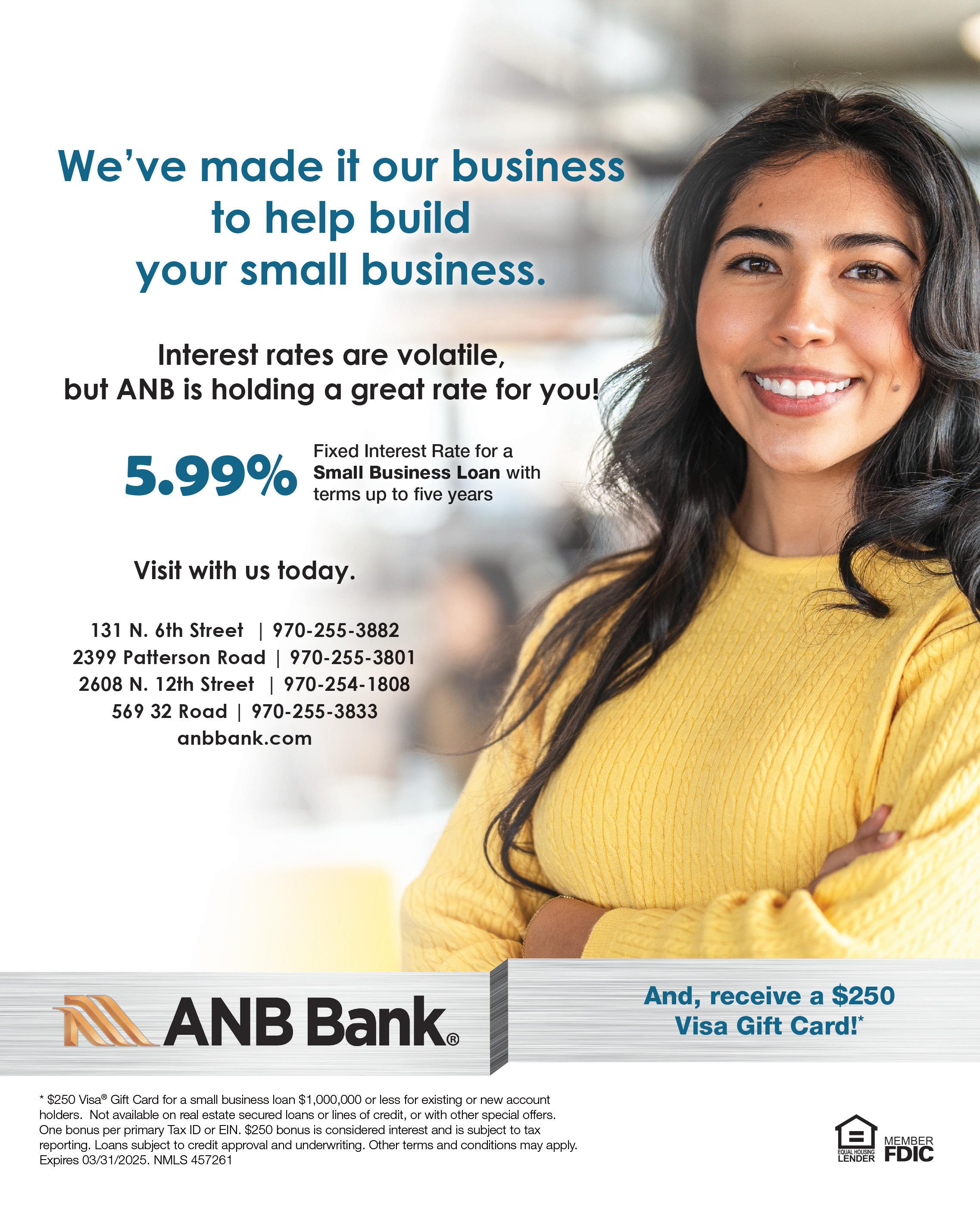 The Business Times is published weekly and distributed throughout Grand Junction, Fruita and Palisade. Advertising rates and deadlines are available upon request. Opinions expressed in this publication are those of the writers and don’t necessarily reflect the views of the publisher, editor or advertisers.