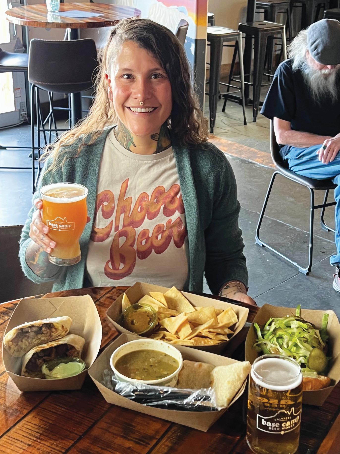 Minnie Zeuner, the marketing and social media coordinator at Base Camp Beer Works, 2575 U.S. 6&50, Unit C, in Grand Junction, shows off Base Camp food and beer that she set up to photograph and post on social media. Photo by Tim Harty.
