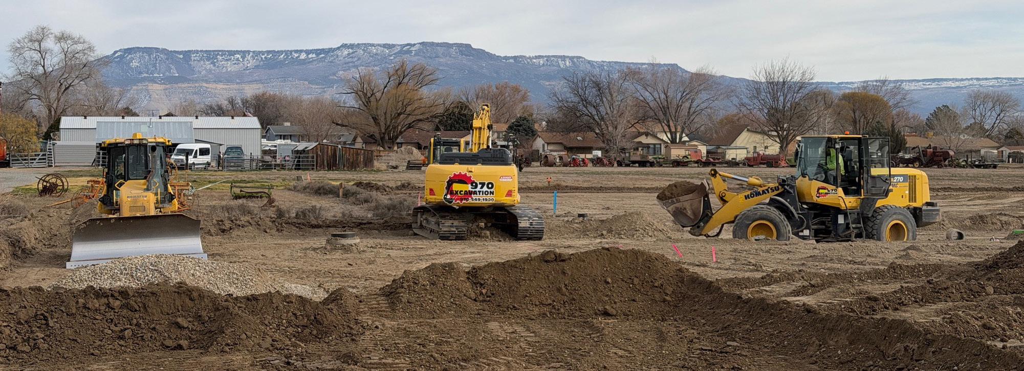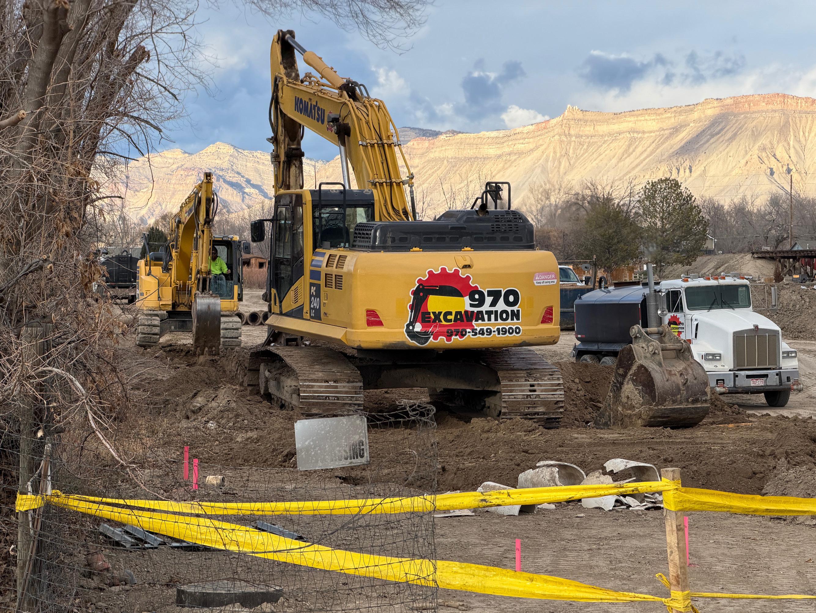 Top and bottom-right photos: Heavy machinery for excavation and dirt moving have been busy since mid-November on the eight acres south of Cross Orchards Historic site, 3073 F Road. The Cross Orchards Valley subdivision does not have its own address yet. Photos by Tim Harty.
