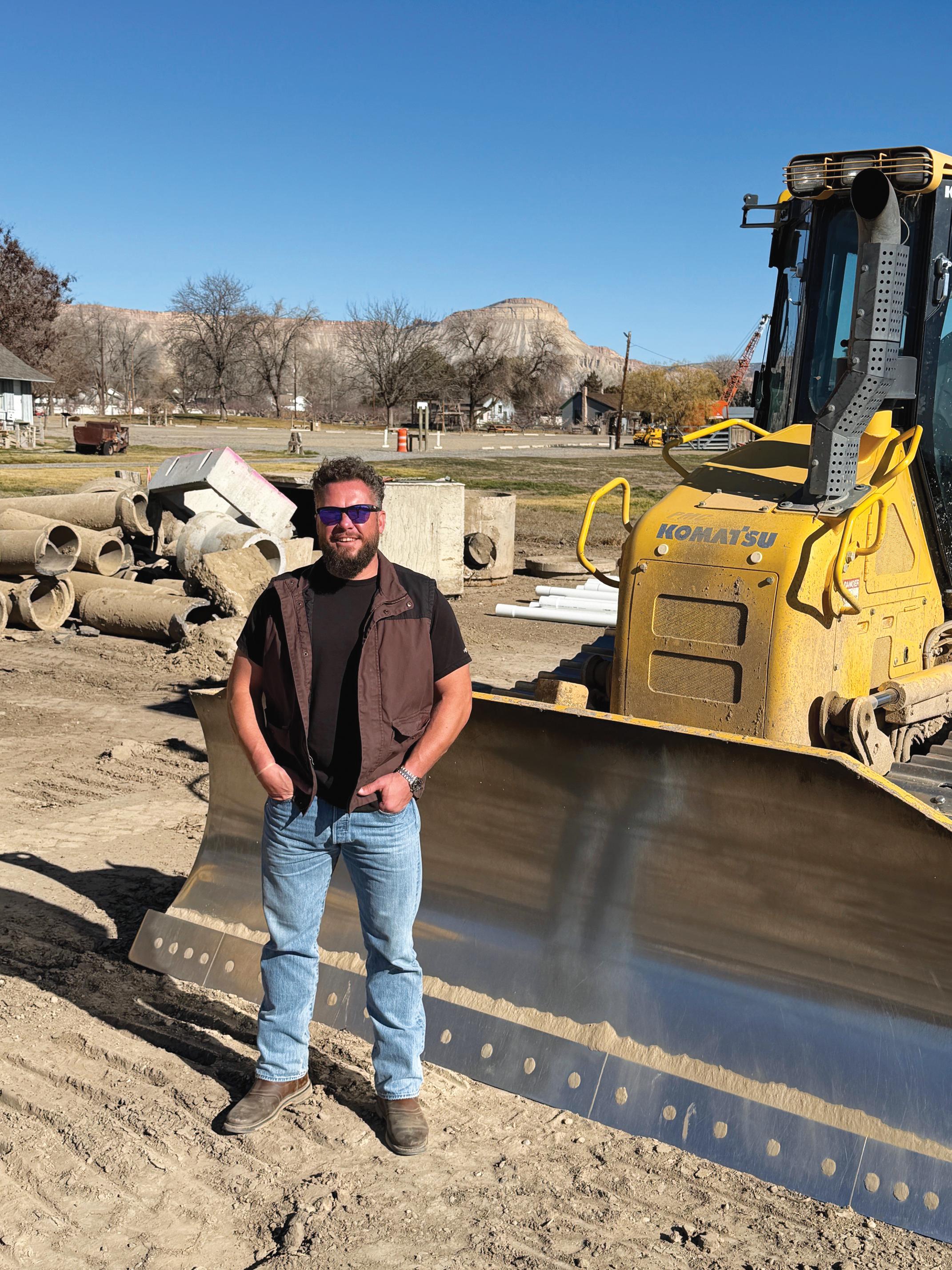 Erik Olson, co-owner of Cross Orchard Development LLC and owner of Belle Rose Builders, stands in front of a Komatsu dozer at the eight-acre site where 28 single-family homes will be built. Excavation and dirt work began in November to install infrastructure and ready the streets for paving in the spring. Olson said once the streets are paved, construction will commence. The land formerly was part of Cross Orchards Historic Site. Photo by Tim