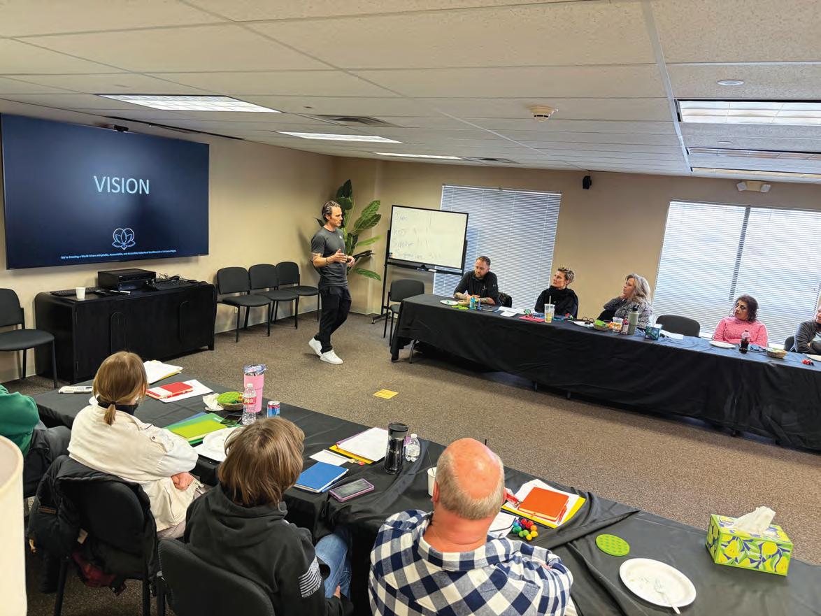 Ava Health CEO Christopher Bennett addresses a group of nearly two-dozen new employees on Jan. 28, which was the third day of a two-week orientation for the new hires, getting them ready for Ava Health to open Feb. 9. One of the things Bennett told the group was: “We will be the most accountable organization that exists in healthcare.” He also said, “You are hired here to be trusted, not micromanaged.”