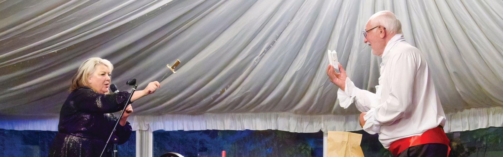 comedy magic act.Astrange combination, but it certainly worked and kept the audience laughing all the way through. There was more than an element of Tommy Cooper with the magic combined with humour, that gave the impression she did not know what she was doing but ended up with a clever trick. For example, during the act she asked various members of the audience questions and wrote down answers, that she discarded, suggesting that she had got the response wrong, all very humorous, but in the end, she picked up the paper she wrote on, and showed us all the answers she had written were correct!