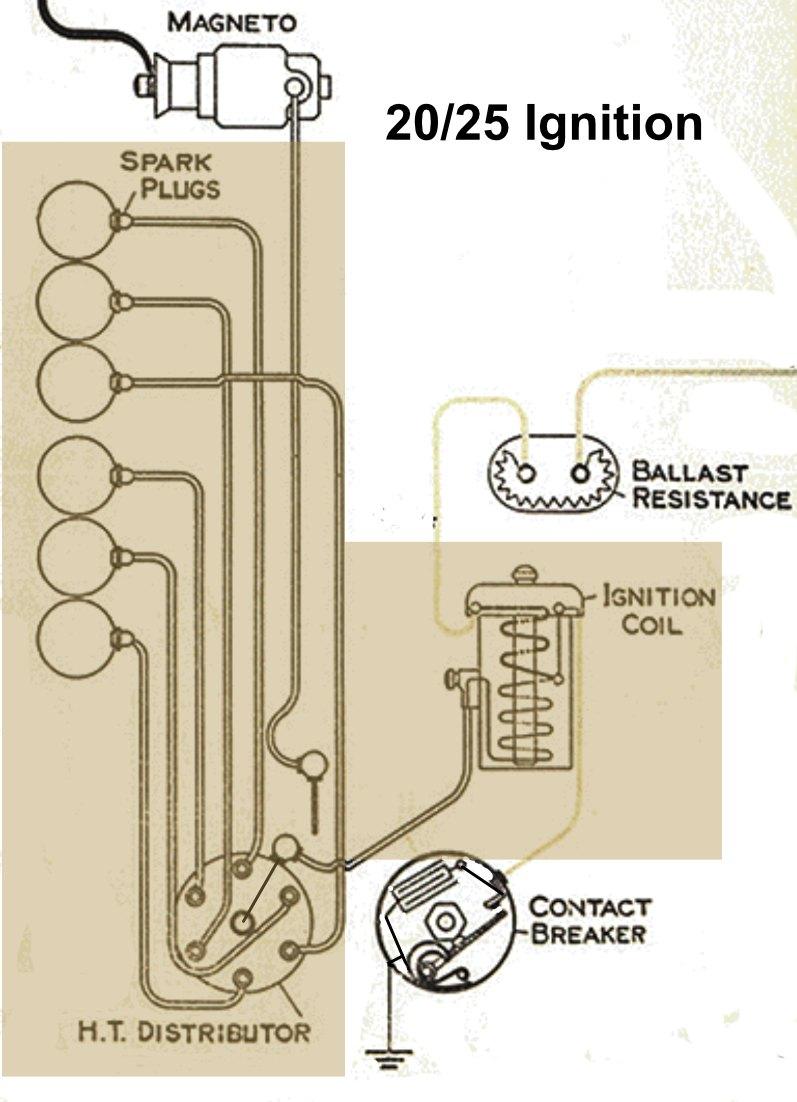 It proved difficult to make the Ignition coil and Condenser have long and reliable lives because insulation in them tended to degrade with age and heat. Thus different car models had redundancy in their ignition systems. The 20HPand 20/25 have a Magneto as an alternative to the battery and Ignition coil. The Derby Bentleys had two coils fitted and the Phantom 3 went as far as having two coils, two distributors and two sparking plugs per cylinder. Even today most owners carry a spare coil and condenser!