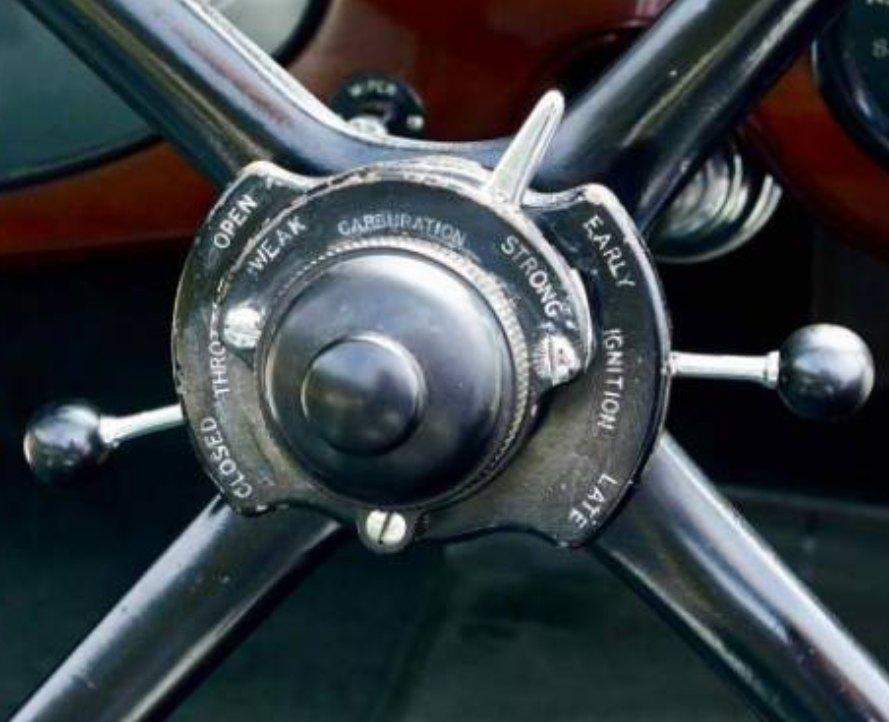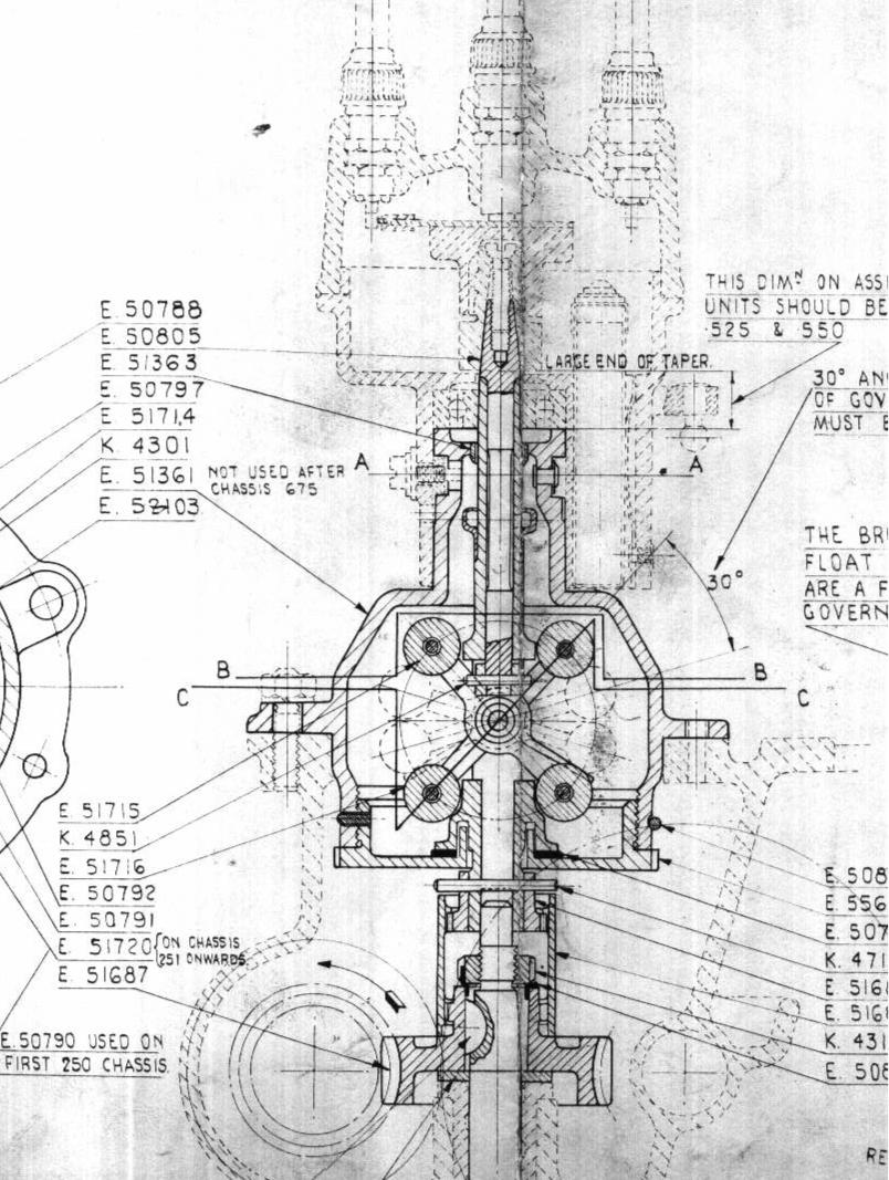 When the 20HPwas designed it was decided that there was no need for this sort of governor on the throttle as the driver used the accelerator pedal in a similar closed loop way to set the desired speed and the speed when unloaded and idling in neutral was stable enough anyway. However the swirling weights arrangement was retained to tweak the timing of sparks and the whole thing still just called a governor in the titles of drawings. The second figure shows the swirling weights hidden in the pedestal of what we think of as the distributor.