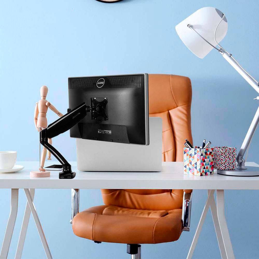 El mismo principio aplica a los soportes porta monitor. Además de mejorar la ergonomía del usuario final, estos accesorios permiten liberar superficie, optimizar proporciones y generar estaciones de trabajo visualmente más ligeras. Sus sistemas de fijación amplían las posibilidades de integración en distintos tipos de cubiertas, sin alterar el diseño del mueble.