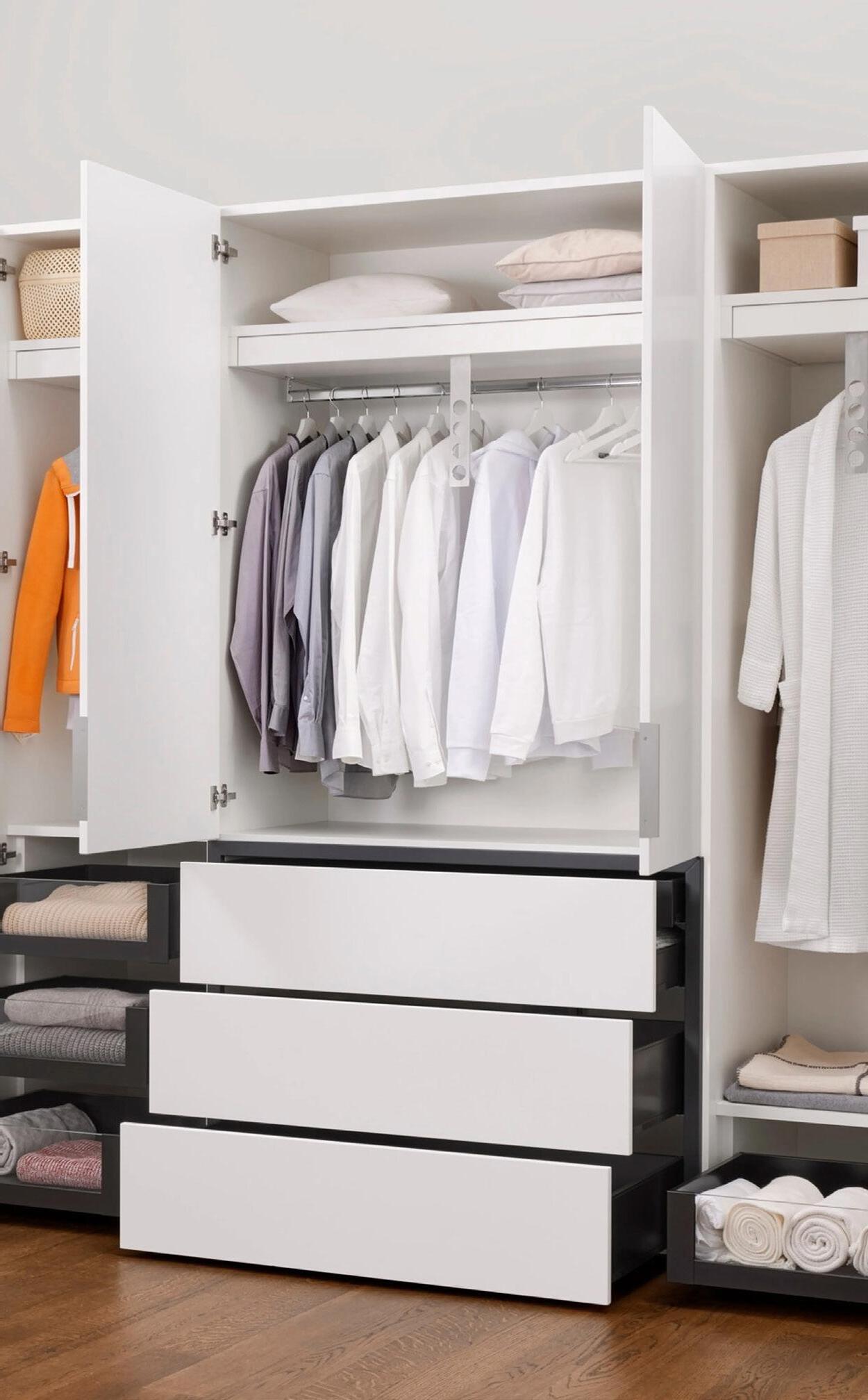 Los cajones son elementos clave en un clóset. Puedes variar las alturas según su uso: