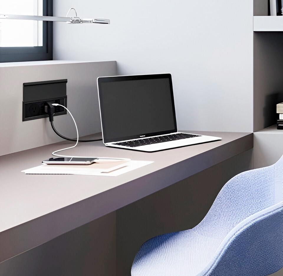 Multicontacto para embutir, diseño minimalista y elegante, cuenta con tapa de protección. Cuenta con 3 sockets +1 USB 5v 18W (A+C)