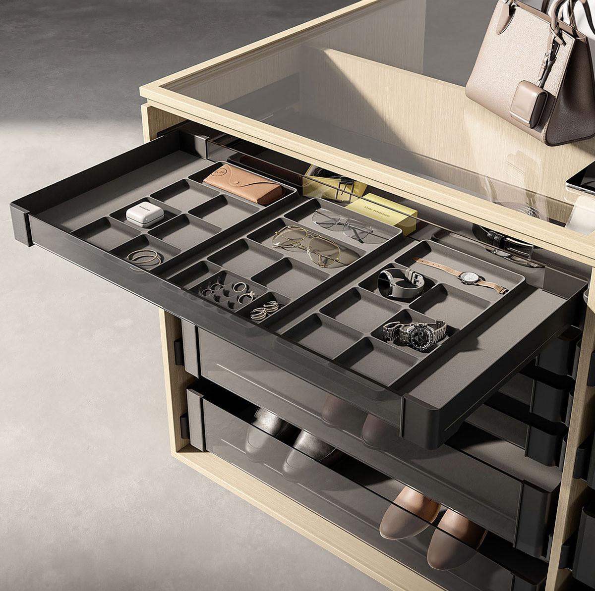 • Necesidades específicas: joyería, relojes, corbatas, cinturones, etc. Este análisis permitirá asignar correctamente los espacios y elegir los herrajes adecuados.