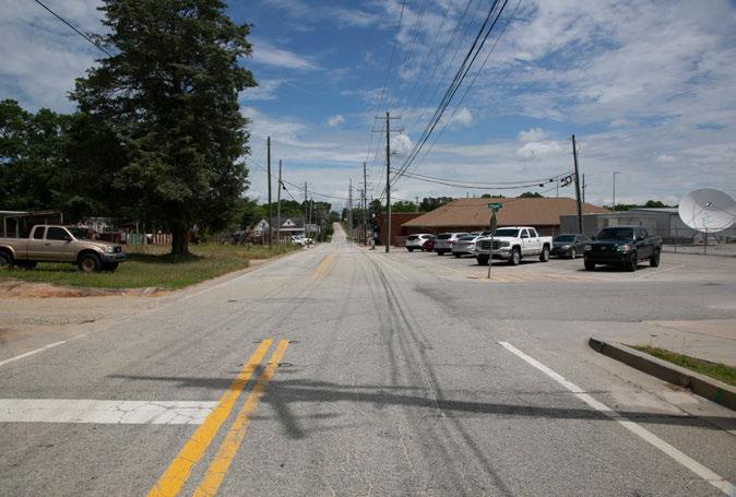 Although the downtown square is the heart of redevelopment efforts in Elberton, the side roads and corridors connecting the city to downtown are also worthy of improvement. Corridor improvements can work to expand pedestrian connections, extend economic development opportunities, and enlarge the footprint of the existing central hub, creating a more vibrant and engaging city environment. Increasing accessibility along these corridors with the inclusion of sidewalks, crosswalks, and trees allows for a safer experience for pedestrians and encourages more businesses to take up shop in downtown Elberton.