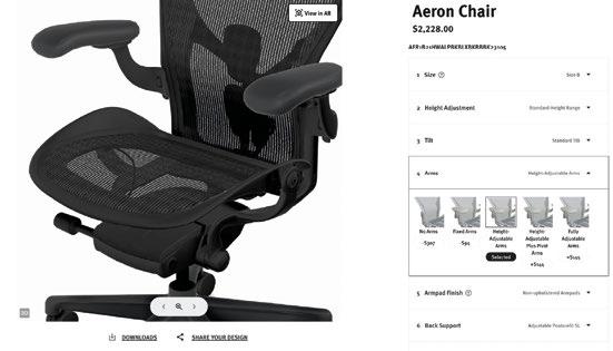 Configuration is equally powerful in design-driven product categories. Herman Miller, part of MillerKnoll, selected 3D Cloud to power scalable 3D product configuration for its iconic Aeron chair, one of the most recognisable office chairs in the world.