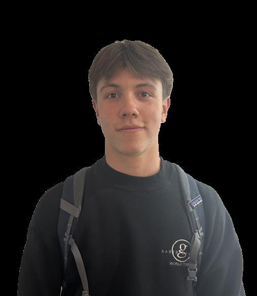 POSING PROUDLY. Senior Evan Morris stands with a friend holding their project IDs. Morris attended the International Science Fair in May 2025. “I was fortunate enough to win second [place] there in cellular and molecular biology,” he said.