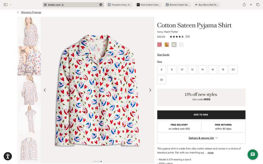 Boden (2025b) Cotton Sateen Py ama Shirt-Ivory, Heart Flutter [Online] Boden UK Available from : https://www.boden.com/products/cotton-sateen-py amashirt-ivory-heart-flutter? pos=6& fid=02fa2a701& ss=c [Accessed 20/02/25]