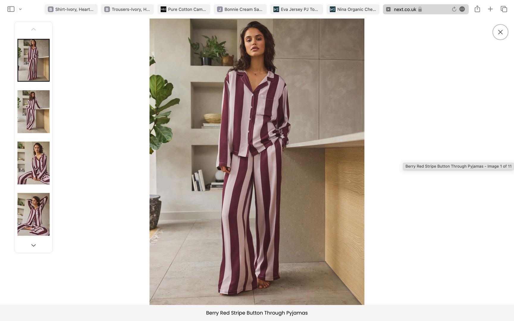 Next Retail Limited (2022) Berry Red Stripe Button Through Pyjamas [Online] Next co uk Available from : https://www next.co.uk/style/su269038/n23835#n23835 [Accessed 20/02/25].