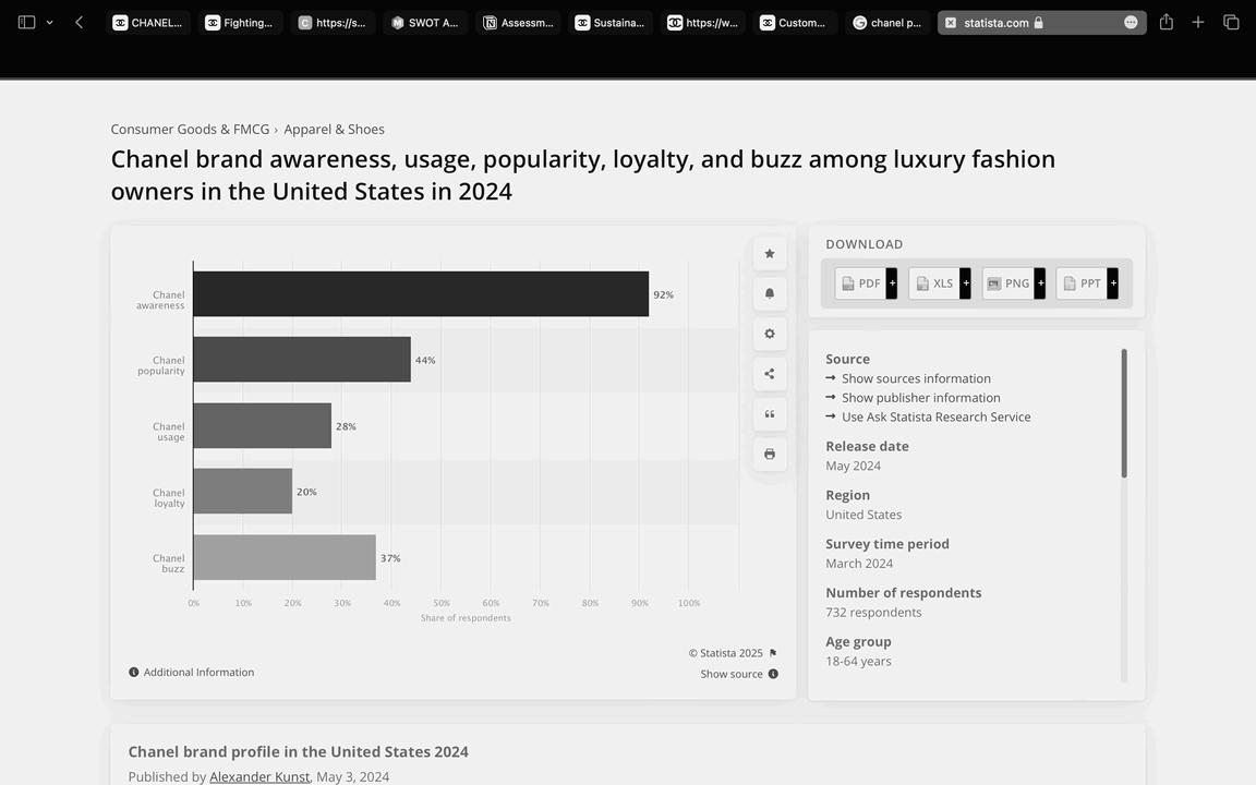 Kunst, A. (2024) Chanel Brand Profile U.S. 2022. [Online] Statista. Available from : https://www.statista.com/forecasts/1351887/chanel-luxury-fashionbrand-profile-in-the-united-states [Accessed 06/01/25]