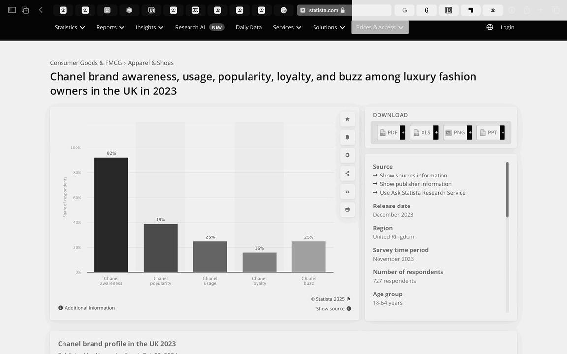 Chanel Brand Awareness, usage, popularity and buss in the United Kingdom (Statista, December 2023)