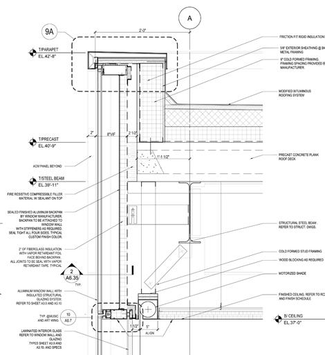 -LEVEL 16 184' -0" LEVEL 15 170' -0" LEVEL 14 156' -0" H2 CW02 A-X-532 6" 24'-6" Steel Beam to support CW unit align Circular shade and support only existed on the south facade A-X-552 CW01 CW02 LEVEL 14 156' -0" A-X-530 H2 MP03 1 A-X-552 6" 1'-2"6" CW01 DATUM CW01 DATUM 4"6" 6"4" 6" 3" 12'-0 1/8" A-X-552 7/31/2020 1:52:00 PM WINSHIP AT MIDTOWN_AE SCALE: 1/2" = 1'-0" CW SECTION AT LOUNGE 5 SCALE: AXON DIAGRAM 4 SCALE: 1/2" = 1'-0" CW WALL AT WEST SIDE 6 LEVEL 184' -0" LEVEL 170' -0" LEVEL 156' -0" HA HD MP01 MP03 CWUNT TYPE SPANDREL VISION AREA VISION AREA CWUNI TYPE CWUNT TYPE SPANDREL METAL PANEL SPANDREL METAL PANEL SPANDREL METAL PANEL LEVEL 184' -0" LEVEL 170' -0" LEVEL 156' -0" OUTPATIENT LOUNGE EXTERIOR WN S MM R EQUINOX INPATIENT LOUNGE H2 CW02 CW02 A-X-532 A-X-532 Open Floor 6" VISION AREA 10'-0" SPANDREL 4'-0" 24'-6" Steel Beam support CW unit align Circular shade and support only existed the south facade A-X-552 CW01 LEVEL 184' -0" LEVEL 170' -0" LEVEL 156' -0" - -530 H2 OUTPATIENT LOUNGE EXTERIOR Wood Batten Interior Ceiling INPATIENT LOUNGE CW02 CW02 MP03 Thermally Broken Connector Mullions - -532 A-X-552 CW01 DATUM CW01 DATUM 4"6" TYP. PANEL MODULE 14'-0" TYP. PANEL MODULE 14'-0" Circular shade and support only existed the south facade Gypsum panel - -530 3" A-X-552 HA HD H2 CW01 CW02 Slab Edge EGRESS STAIR OPEN AREA Slab Edge 1'-4"3" Steel Beam support CW 3"6" SCALE: 1/2" 1'-0" ELEVATION DETAIL 3 SCALE: 1/2" 1'-0" CW SECTION AT LOUNGE 5 SCALE: 1/2" 1'-0" CW WALL AT WEST SIDE 6 LEVEL 184' -0" LEVEL 170' -0" LEVEL 156' -0" HD MP03 CWUN TYPE SPANDREL VISION AREA VISION AREA CWUNI TYPE CWUNT TYPE SPANDREL METAL PANEL SPANDREL METAL PANEL SPANDREL METAL PANEL LEVEL 184' -0" LEVEL 170' -0" LEVEL 156' -0" OUTPATIENT LOUNGE EXTERIOR WNER S MM R EQUINOX INPATIENT LOUNGE H2 CW02 CW02 -- -532 Open Floor 6" VISION AREA 10'-0" SPANDREL 4'-0" 24'-6" Steel Beam support CW unit align Circular shade and support only existed the south facade A-X-552 CW01 LEVEL 184' -0" LEVEL 170' -0" LEVEL 156' -0" A-X-530 H2 OUTPATIENT LOUNGE EXTERIOR Wood Batten Interior Ceiling INPATIENT LOUNGE CW02 CW02 MP03 Thermally Broken Connector Mullions A-X-532 A-X-552 CW01 DATUM 4"6" TYP. PANEL MODULE 14'-0" TYP. PANEL MODULE 14'-0" and support only south facade Gypsum panel A-X-530 3" A-X-552 HD H2 CW01 CW02 Slab Edge EGRESS STAIR OPEN AREA Slab Edge Steel Beam support CW 3"6" SCALE: 1/2" 1'-0" ELEVATION DETAIL 3 SCALE: 1/2" 1'-0" CW SECTION AT LOUNGE 5 SCALE: 1/2" 1'-0" CW WALL AT WEST SIDE 6 South View - Under construction WINSHIP AT MIDTOWN EMORY UNIVERSITY HOSPITAL SKIDMORE, OWINGS & MERRILL LLP 32 BASELINE (WITHOUT LOUVER/FINS) CURRENT DESIGN (LOUVER/FINS) Radiation Benefit Shows the angle and direction where shading will have the maximum benefit Louver Strategy Different impacts on energy Model (Eergy saving/Daylight quallity) RADIATION BENEFIT AREA WINSHIP AT MIDTOWN EMORY UNIVERSITY HOSPITAL SKIDMORE, OWINGS & MERRILL LLP 32 BASELINE (WITHOUT LOUVER/FINS) CURRENT DESIGN (LOUVER/FINS) Radiation Benefit Shows the angle and direction where shading will have the maximum benefit Louver Strategy Different impacts on energy Model (Eergy saving/Daylight quallity) HELPFUL RADIATION HARMFULL RADIATION RADIATION BENEFIT AREA