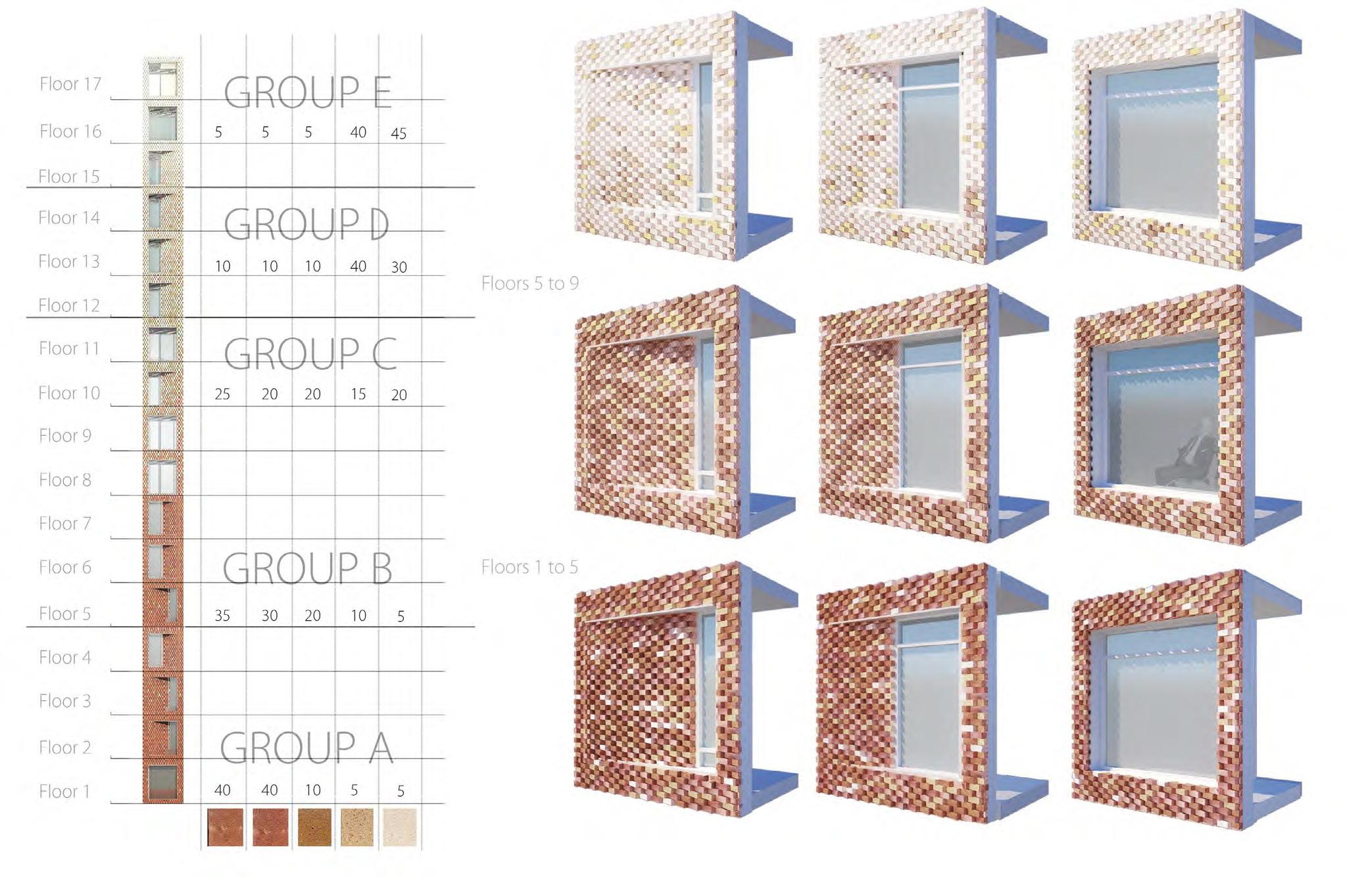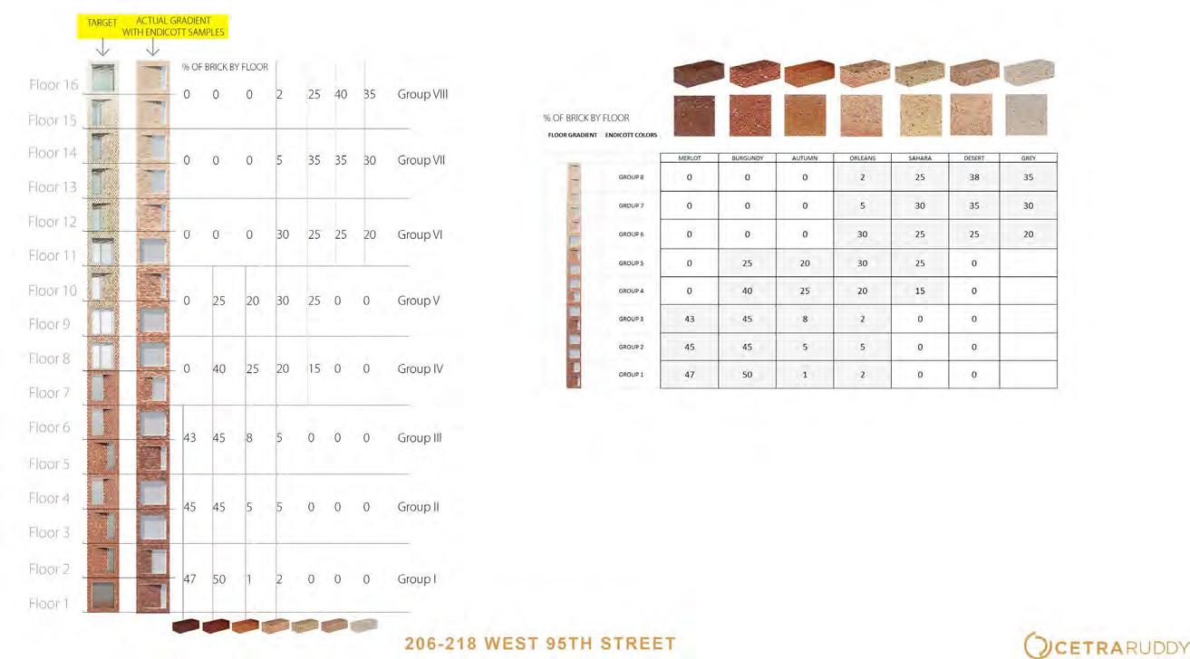OPT 6 5 Brick Colors Gradiation OPT 6 Gradiation Module 47% 47% 5% 5% 0 0 0 Development @ Revit OPT 6 5 Brick Colors Vertical Gradiation Module C OPT 6 5 Brick Colors Vertical Gradiation Module MODULE A 6’ x 6’ # 35 units MODULE B 4’x 6’ #30 units MODULE C 1’6”x6’ # 80 units 47% FL 1 FL2 FL 3 FL 4 FL 5 FL 6 FL 7 FL 8 FL 9 FL 10 FL 11 FL 12 FL 13 FL 14 FL 15 FL 16 47% 43 0 0 0 0 47% 47% 45 48 25 0 0 5% 5% 8 25 20 0 0 5% 5% 5 20 30 30 5 0 0 0 15 25 25 35 0 0 0 0 0 25 35 0 0 0 0 0 20 30
