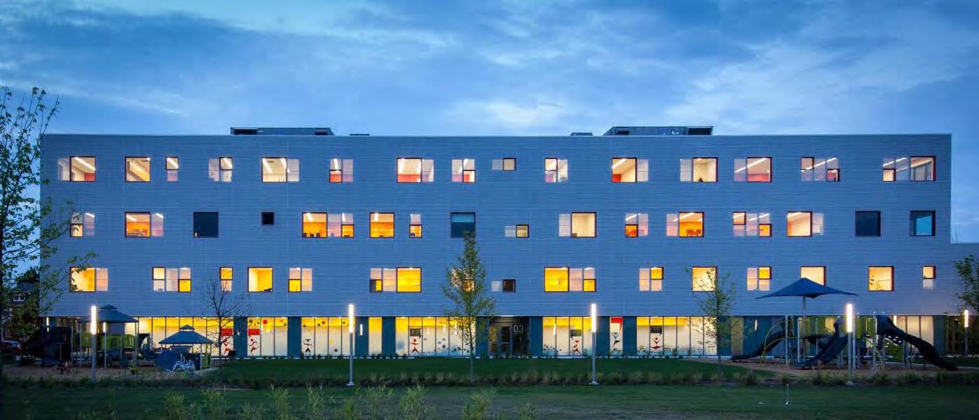 70,000 SF Residential; 14,000 SF Community facilites and outdoor area.