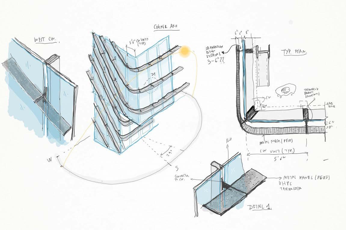 SLEEK AND PERFORMATIVE GLAZING A high performance facade shields against the low angle sun while providing optimal patient comfort and visual connection 1 3 5 2 4 6 02|