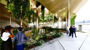 just a stair, it's a place for the people it's connecting multiple location of it’s omni-directionality generates a around it for botanic gardens. place maker, where each user "finds his place"; you can walk on it, climb it, sit on people to congregate and brings in the the surrounding landscape. designed starting from the very basic stair: the step, and bringing the idea forward to become the main component whole. topography for the interior lobby that the existing structure of the building, with squared platforms that the grid the larger grid of the material gives to the hub a natural very warm and in contrast with the it produces a very tactile the user.