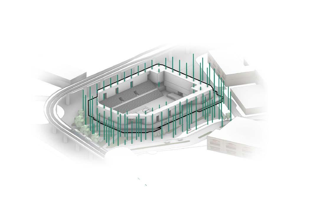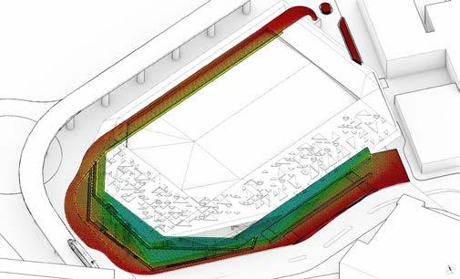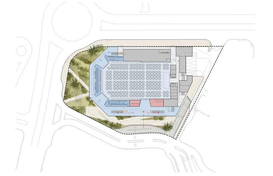 Plan Ground Floor +0.00m 5 7 9 6 10 4 7 7 4 7 7 Plan Level 1 +11.00m 2 5 4 6 3 4 6 6 6 Plan Roof +24m Useable area for Photovoltaic panels: 8100 sqm Output: 1,140 MWh per year (approximate) Ground Floor - Councorse level Mezzaninne level - VIP Level
