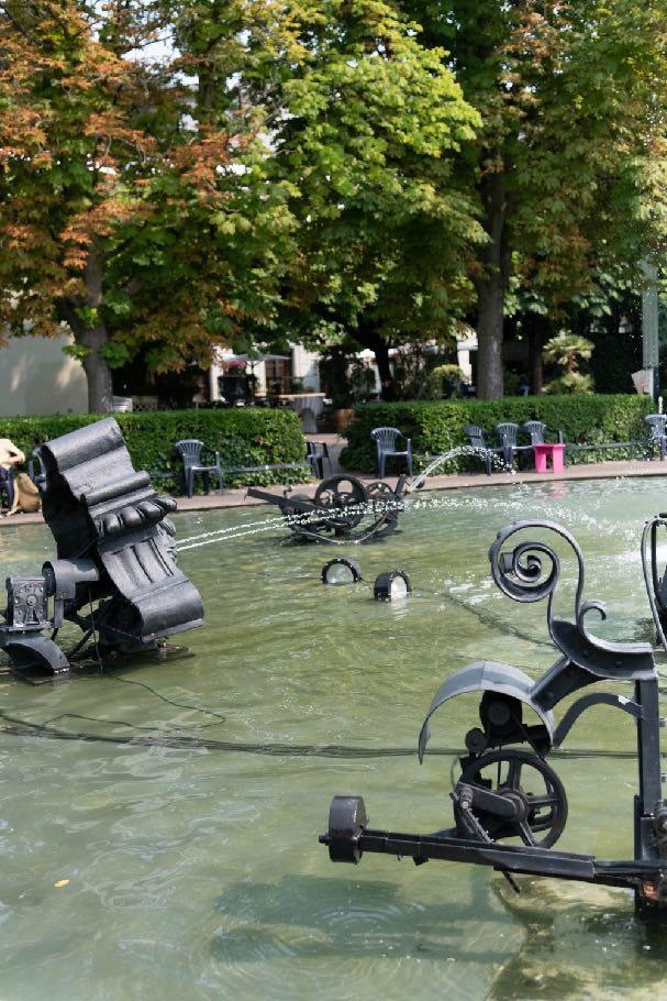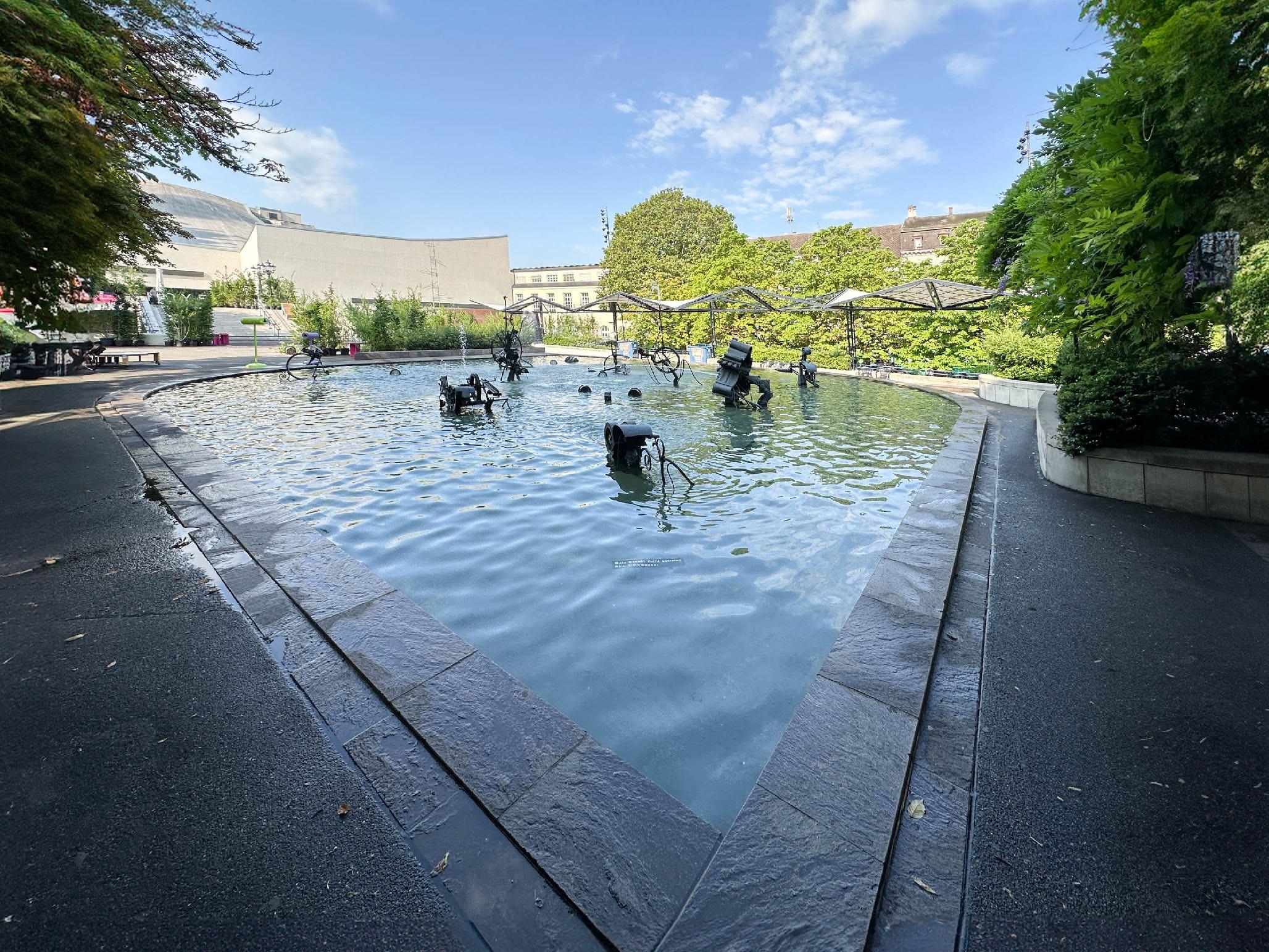 Der Tinguely-Brunnen wird jeden Mittwoch gereinigt und ist daher zu diesem Zeitpunkt außer Betrieb.