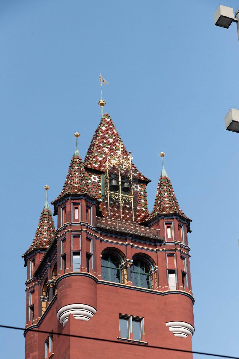 An der Stelle, an der sich heute das auffällige rote Sandsteingebäude befindet, war bereits im Jahr 1290 das politische Herzstück von Basel. Der historische Mittelbau erhielt seine heutige Gestalt im Rahmen des Beitritts Basels zur Schweizerischen Eidgenossenschaft im Jahr 1501. Über den drei Eingängen sind jeweils Wappen angebracht. Immer ist ein schwarzer Krummstab zu sehen. Zwei dieser Krummstäbe weisen nach links, während einer nach rechts zeigt. Die Wappen der Stadt Basel sowie des Halbkantons Basel-