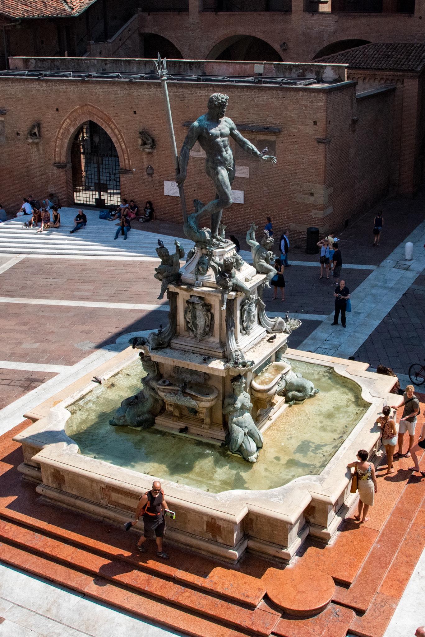 L'imponente Fontana del Nettuno si trova al centro di Piazza del Nettuno. Fu realizzata tra il 1563 e il 1566 dallo scultore fiammingo Giambologna in marmo e bronzo, su disegno di Tommaso Laureti.