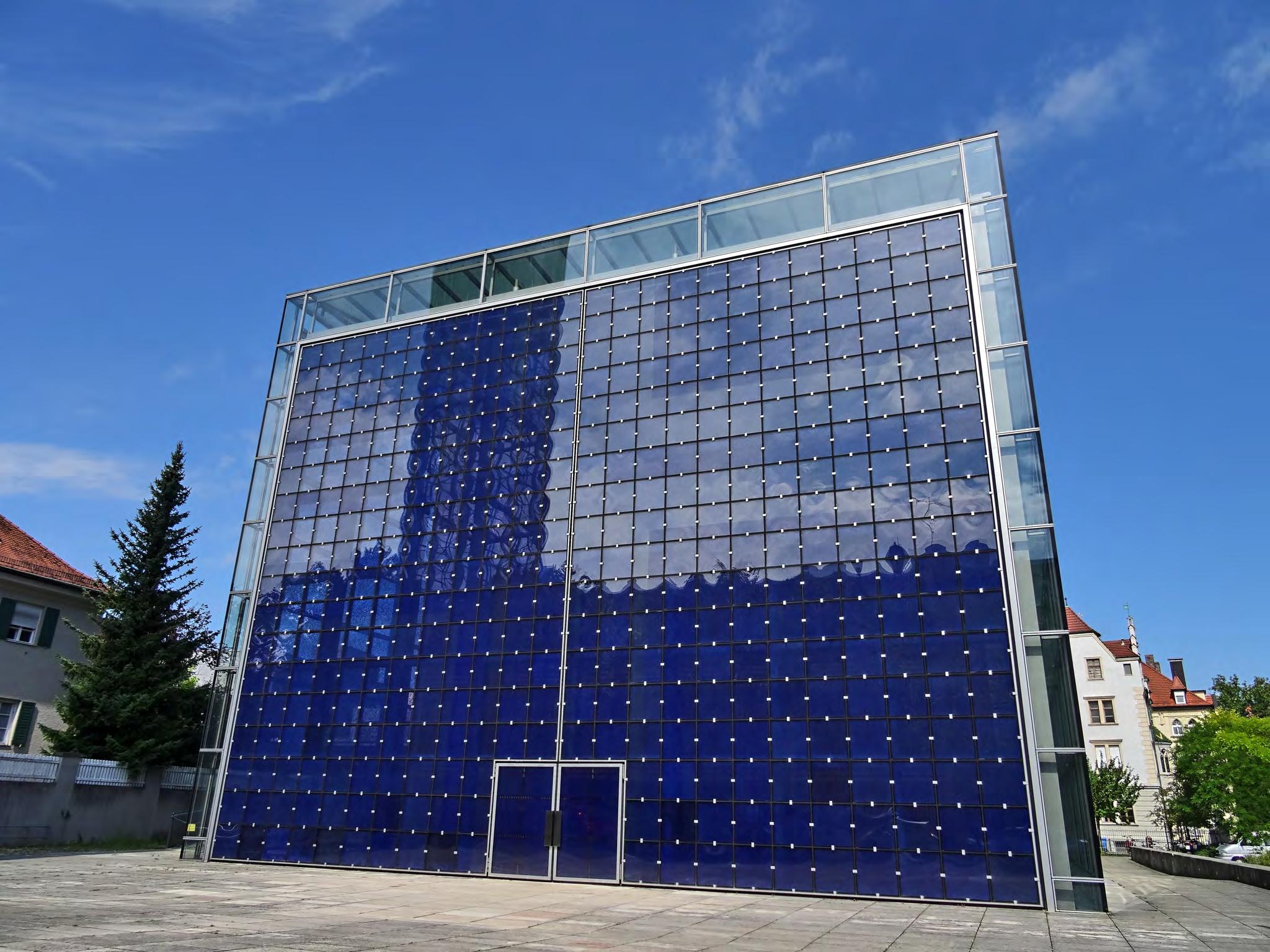 Questo prisma retto con la facciata di vetro blu non lascia immaginare una chiesa, ma non appena vi si entra, si resta affascinati dal chiarore della Herz-Jesu-Kirche (Chiesa del Sacro Cuore di Gesù). Tutta la facciata principale della chiesa si può aprire come una porta. Il