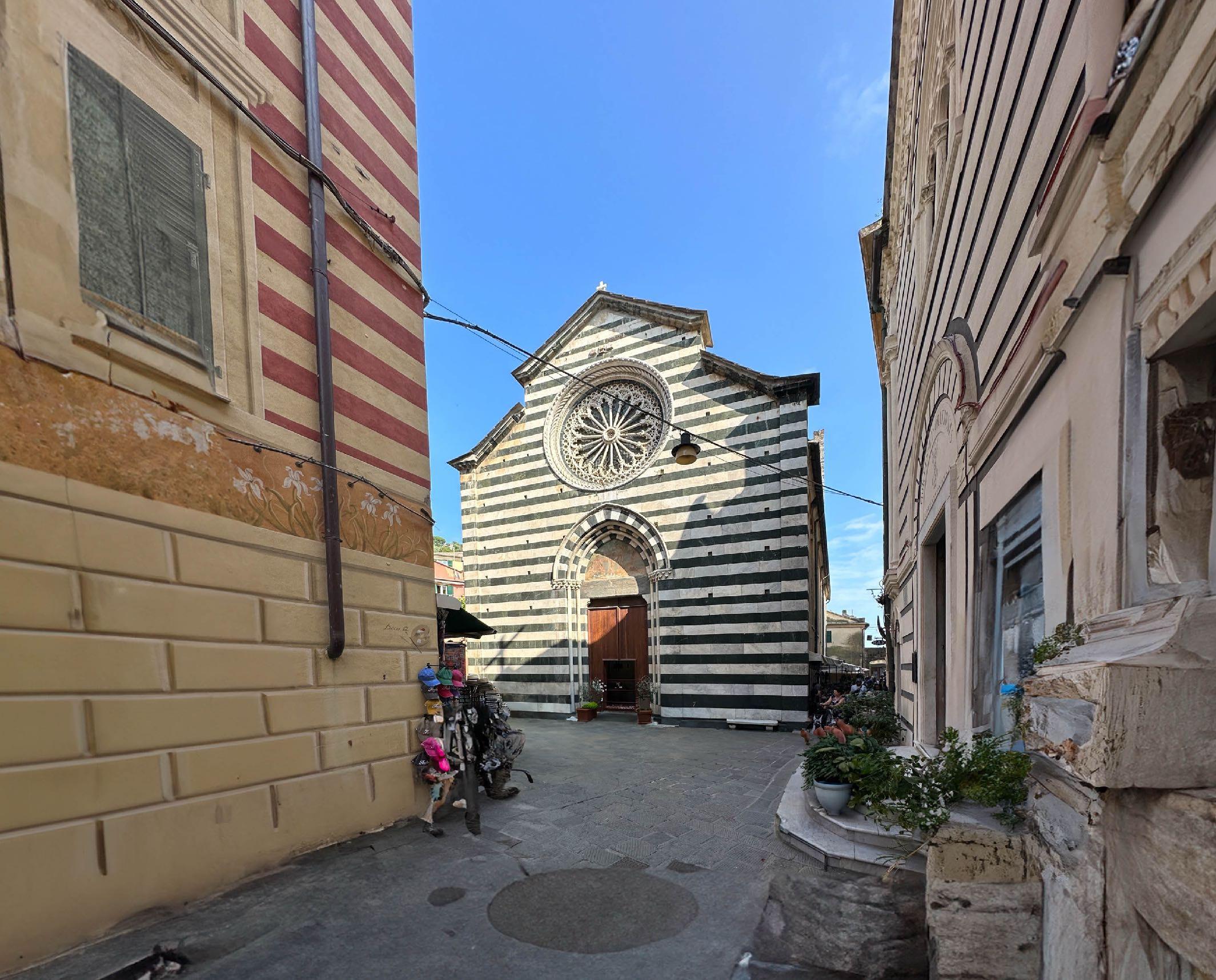 Die Kirche San Giovanni Battista (St. Johannes der Täufer) wurde zwischen 1244 und 1307 errichtet. Ihre Fassade ist mit hellem Marmor und dunklem Serpentin verkleidet. Besonders bemerkenswert ist das Rosettenfenster aus weißem Marmor. Im Inneren der Kirche, wo sich ein Taufbecken aus dem Jahr 1360 befindet, dominiert eine schwarz-weiße Farbgestaltung. Um den Eindruck von Größe zu verstärken und die Akustik zu optimieren, verjüngt sich das Kirchenschiff vom Altar bis zum Eingang.