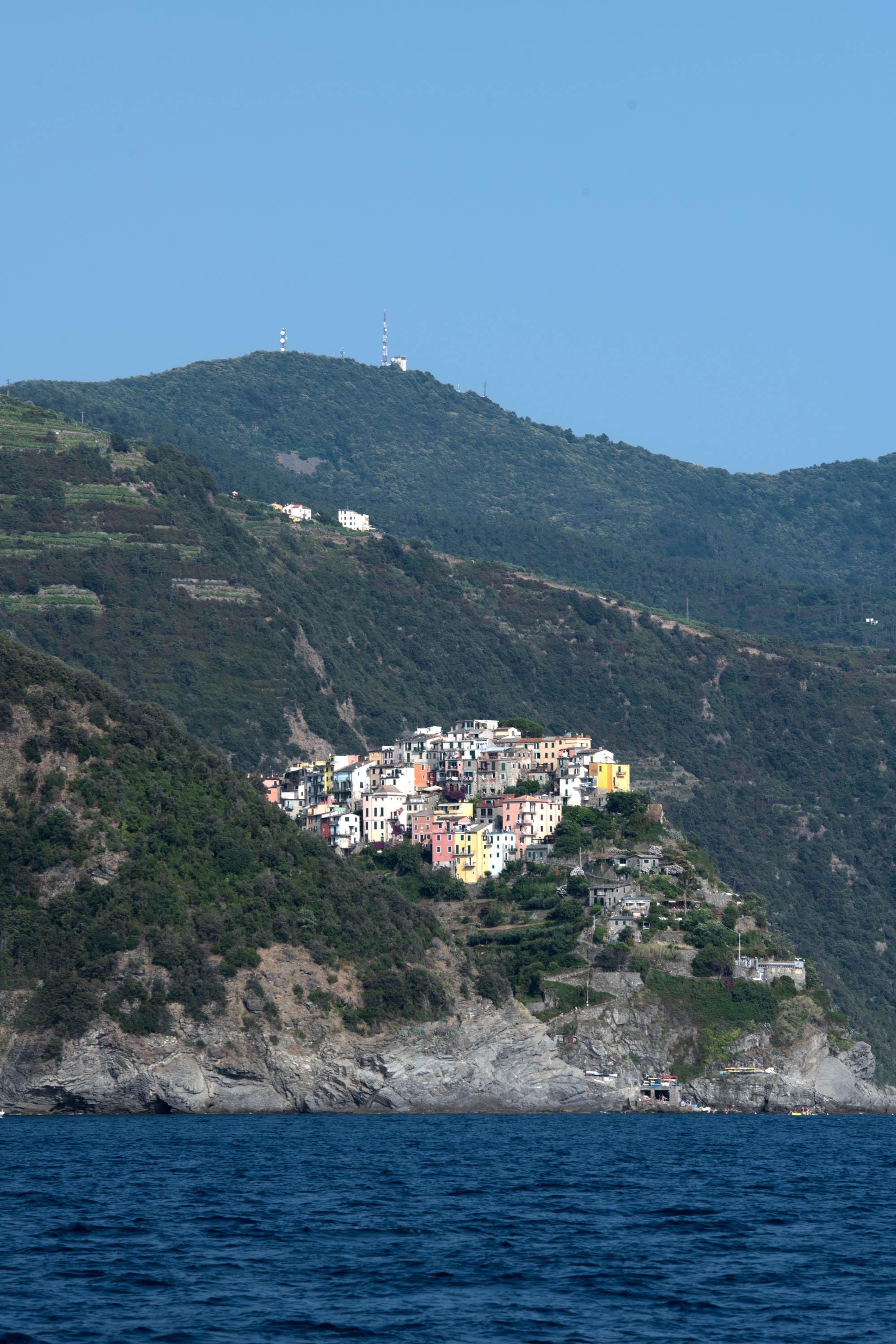 Corniglia ist das einzige Dorf in den Cinque Terre, das keinen eigenen Hafen besitzt. Es befindet sich ungefähr 100 Meter über dem Meeresspiegel. Vom Bahnhof aus erreicht man den Ort über die Lardarina, eine Ziegelsteintreppe mit 385 Stufen. Obwohl es einen Bus gibt, der den Bahnhof mit dem Dorf verbindet, kann dieser nur eine sehr begrenzte Anzahl von Fahrgästen transportieren. Daher bleibt einem entweder das Warten auf den nächsten (oder übernächsten) Bus oder das 20-