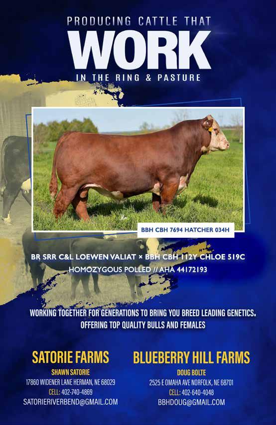 I want to thank you all for allowing me to represent our state again as the 2023 Nebraska State Hereford Queen. My name is Grace Pinckney, daughter of Justin and Sarah Nelson, and Zach and Dani Pinckney. I am 20 years old and currently a second year at Southeast Community College in Beatrice, NE. I have been involved in the Hereford Association for the past eight years and have been on the Jr. Board for the past four years. Being a part of this association has been more like being a part of a family. I have grown a passion for the Hereford breed and love serving our breeders and youth. I have learned so much through showing, being on the board, and as the State Queen. I plan on staying a part of this Association as long as I can and being an active member. If you would like me to come to your sale or an event, contact me or HWN President, Katie Nolles at nebraskaherefordwomen@ gmail.com. Again, I’m beyond honored and excited to serve you as the 2023 Nebraska State Hereford Queen.