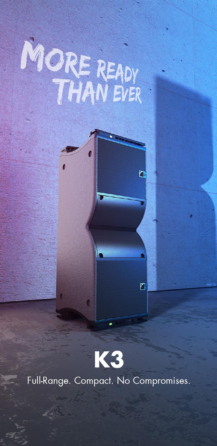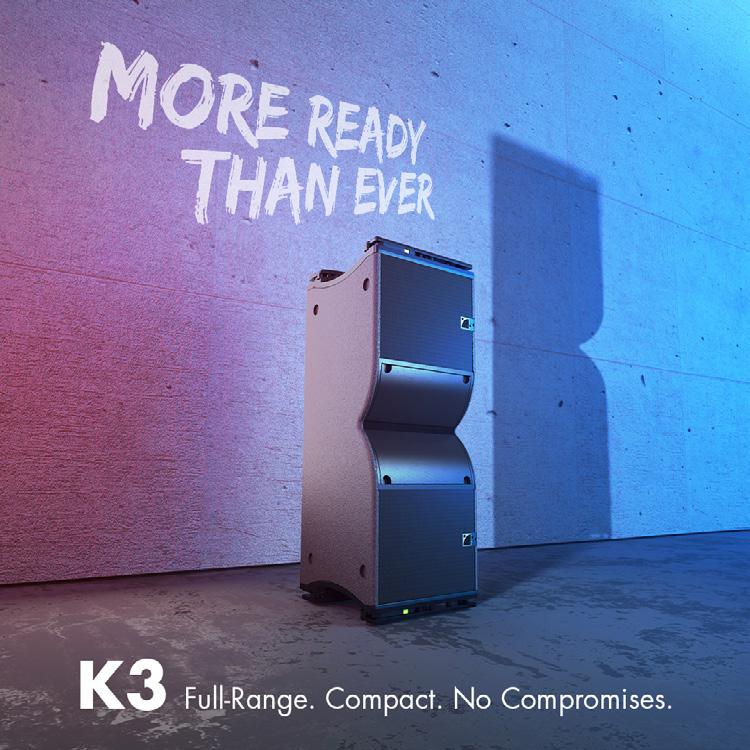 The K3 is a versatile loudspeaker built for mid-size events and venues. Completing the K Series line, K3 offers reduced weight, Panflex™ variable directivity, laminar vents for strong low-frequency performance down to 42 Hz, and impressive SPL. Designed for audiences of 1,000 to 10,000, it delivers large-format sound in a compact 12” enclosure. With fewer subwoofer and amplification needs, the K3 is fast to deploy, sustainable, and cost-effective.