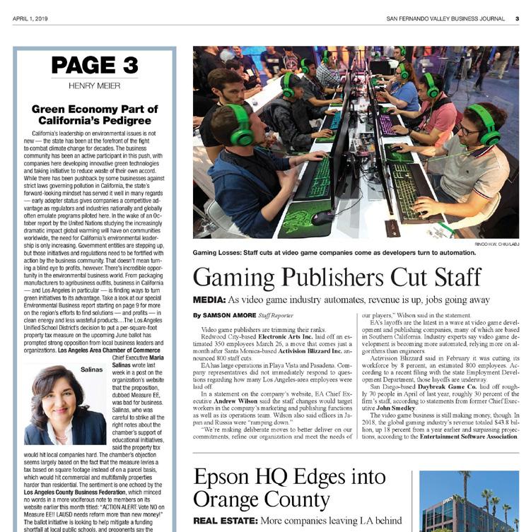 Alongside my work at the Los Angeles Business Journal, I also collaborated with its sister publication, the San Fernando Valley Business Journal (SFVBJ). As the leading source of business news in the San Fernando Valley, SFVBJ delivers award-winning print coverage, authoritative company lists, and timely reporting on major deals and developments. Its content spans real estate, strategic business insights, community trends, special reports, executive profiles, and leadership transitions. Working with SFVBJ was a rewarding experience that broadened my exposure to regional business journalism.