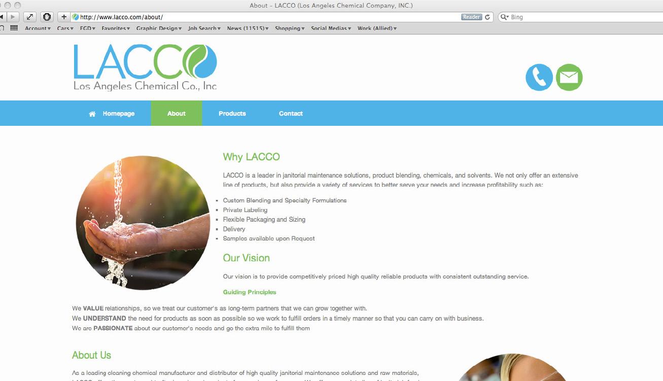 Designing the Los Angeles Chemical Company (LACCO) website was a rewarding project that strengthened my web design skills and pushed my capabilities to a higher level. I’m grateful for the trust LACCO placed in me to independently deliver a polished, high-performing site that contributed to their sales growth. Completing this project reinforced my confidence in web development and affirmed my ability to manage complex digital assignments. I’m proud to have supported LACCO’s online presence and overall brand advancement.