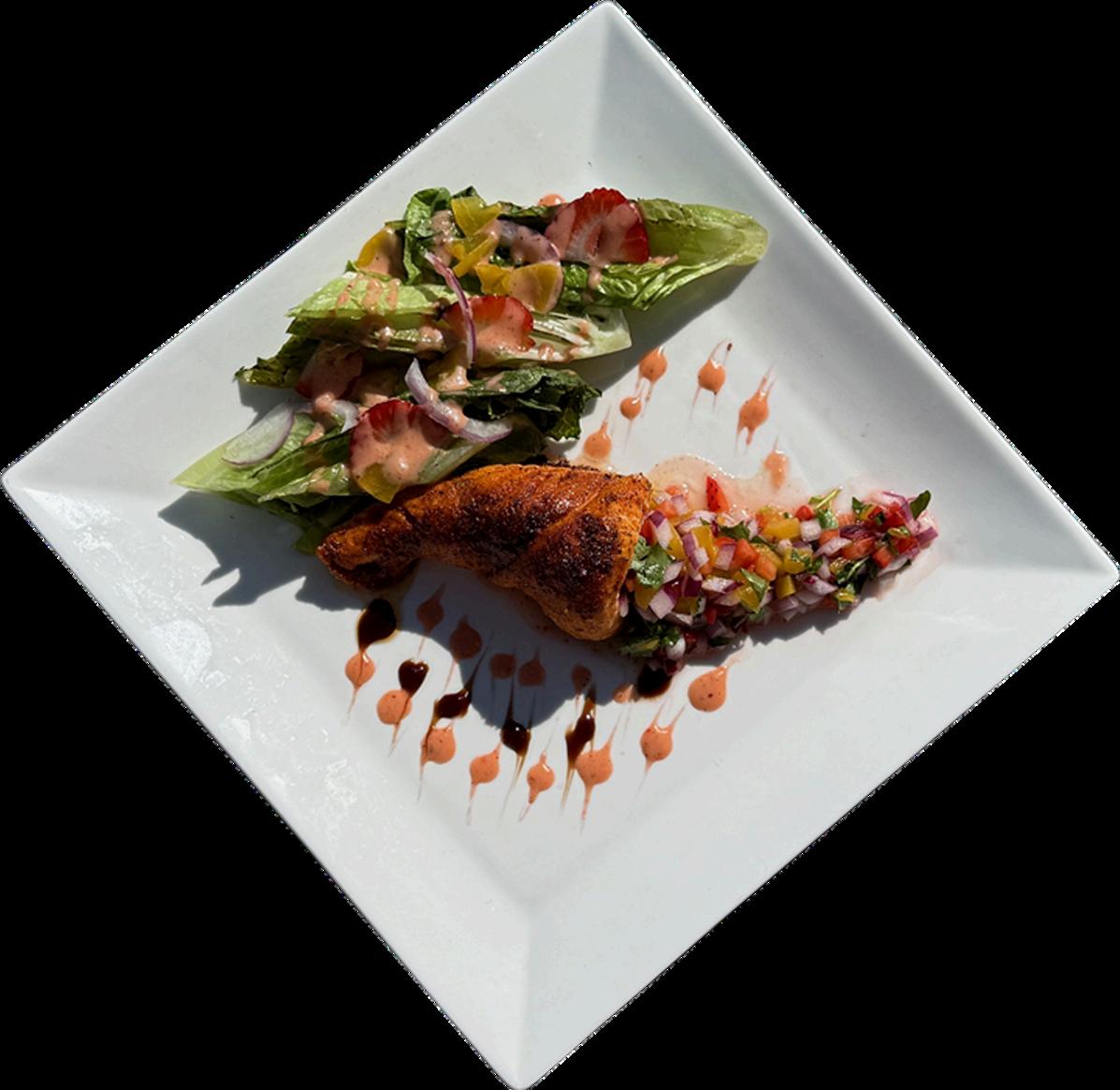 + Salad with Peach Pico & Strawberry Vinaigrette